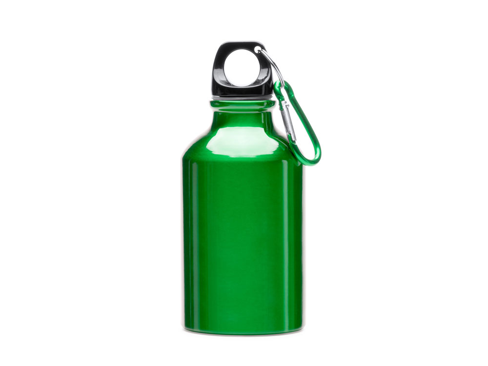 Алюминиевая бутылка с карабином. Черная крышка и карабин в тон бутылки. Емкость 330 мл. Поставляется в дизайнерской упаковке.