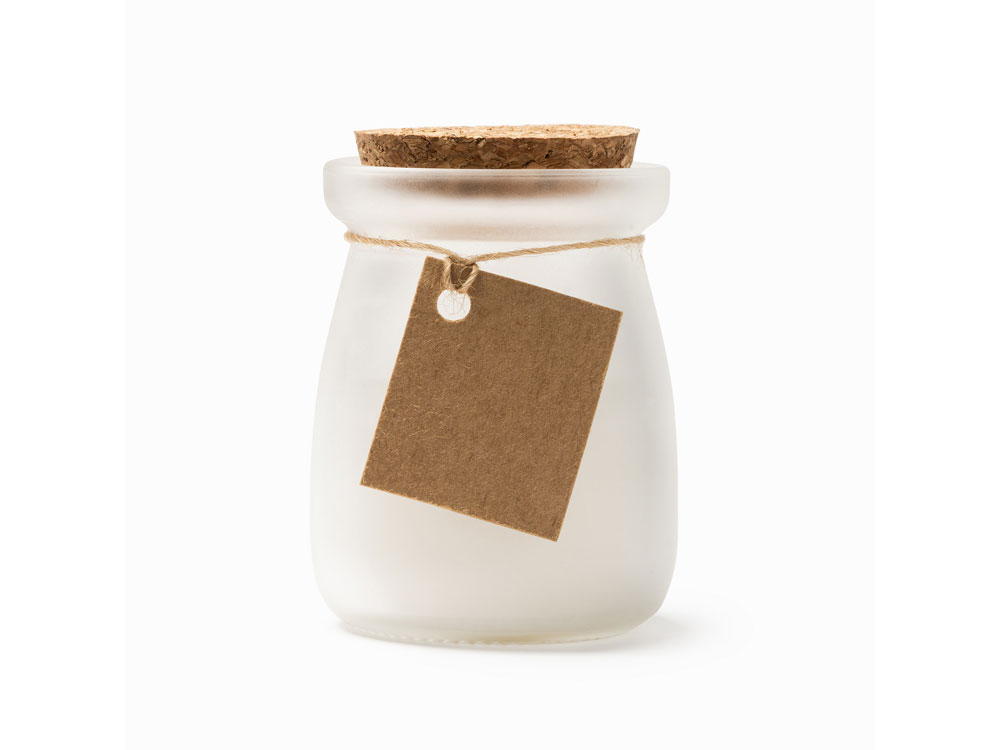 Ароматическая свеча в подсвечнике с пробкой. Аромат ванили. В комплект входит крафт-ярлык для нанесения 3 х 3,5 см.