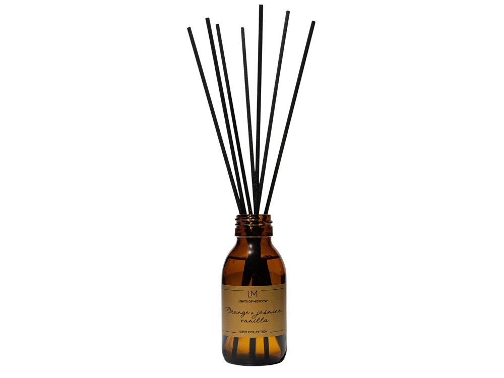 Диффузоры - это простое, изящное и долговременное решение, как наполнить пространство приятным ароматом. Для аромадиффузоров Lights of Moscow используем премиальные ароматизаторы из Европы и США, экологичную базу, фибровые палочки и качественную тару. Погрузитесь в чарующий мир ароматов, где солнечные апельсины переплетаются с изысканным жасмином и сливочной ванилью. Этот уникальный букет превратит Ваше пространство в благоухающий оазис, наполненный теплом и уютом. Верхние ноты: апельсин Средние ноты: жасмин Базовые ноты: ваниль Комплектность: - Подарочный брендированный тубус - 1 шт. - Колба янтарная стеклянная с жидкостью - 1 шт. - Фибровые палочки, запечатанные фтрменной наклейкой LM - 7 шт. - Инструкция - 1 шт. - Открытка - 1 шт. - Упаковочная бумага - 1 шт. Условия хранения: — Свечи, аромасаше, аромадиффузоры, SPA-наборы следует хранить при температуре +18…+24 °C, вдали от источников тепла, сквозняков и прямых солнечных лучей. — Рекомендуемая влажность — не более 50%. — Избегайте длительного воздействия яркого света.