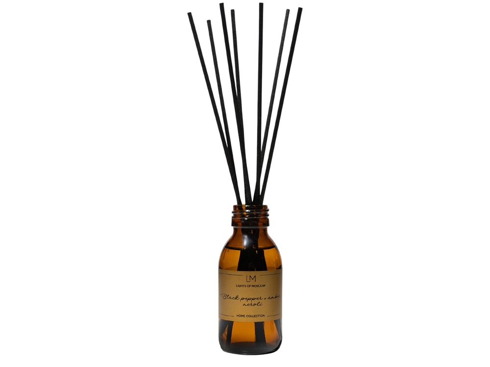 Диффузоры - это простое, изящное и долговременное решение, как наполнить пространство приятным ароматом. Для аромадиффузоров Lights of Moscow используем премиальные ароматизаторы из Европы и США, экологичную базу, фибровые палочки и качественную тару. Стойкая пряная композиция, главным действующими лицами которой стали черный перец, дымная амбра и свежее масло нероли, обволакивающие пространство горьковатой полупрозрачной вуалью. Верхние ноты: черный перец Средние ноты: амбра Базовые ноты: нероли Комплектность: - Подарочный брендированный тубус - 1 шт. - Колба янтарная стеклянная с жидкостью - 1 шт. - Фибровые палочки, запечатанные фтрменной наклейкой LM - 7 шт. - Инструкция - 1 шт. - Открытка - 1 шт. - Упаковочная бумага - 1 шт. Условия хранения: — Свечи, аромасаше, аромадиффузоры, SPA-наборы следует хранить при температуре +18…+24 °C, вдали от источников тепла, сквозняков и прямых солнечных лучей. — Рекомендуемая влажность — не более 50%. — Избегайте длительного воздействия яркого света.