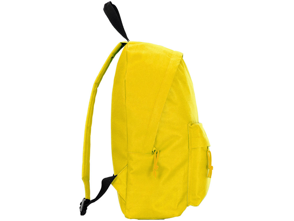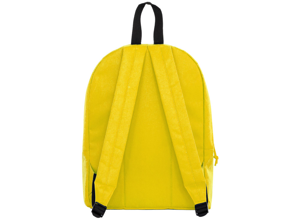 Базовый рюкзак из прочной ткани. Двойной плечевой ремень и контрастная ручка. Два кармана: основной и один спереди с молниями, клапанами и бегунками в тон