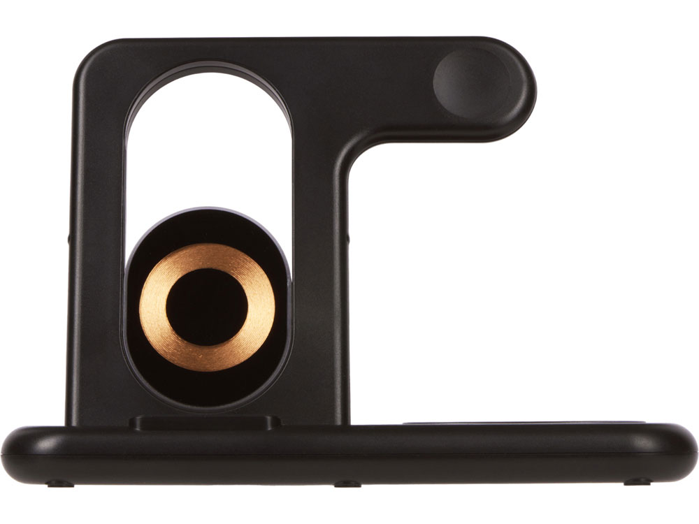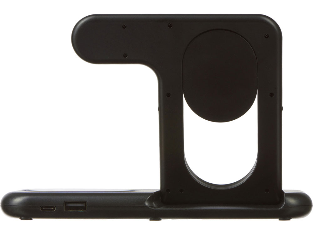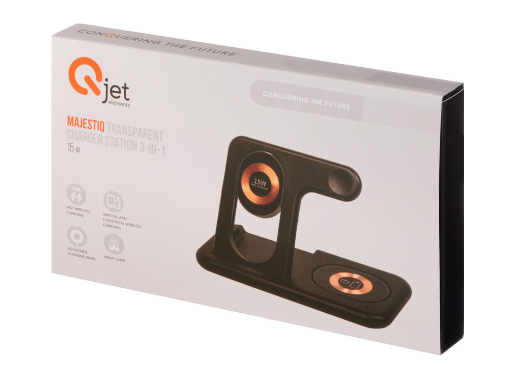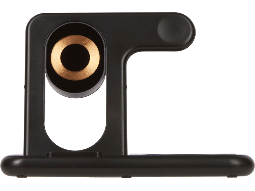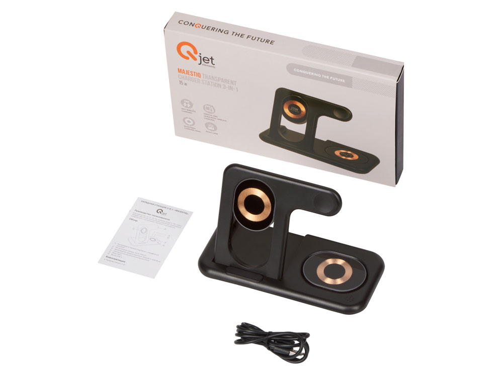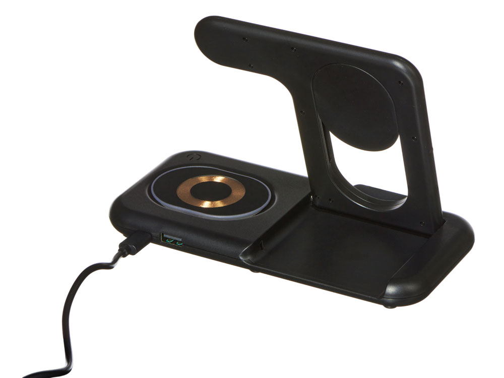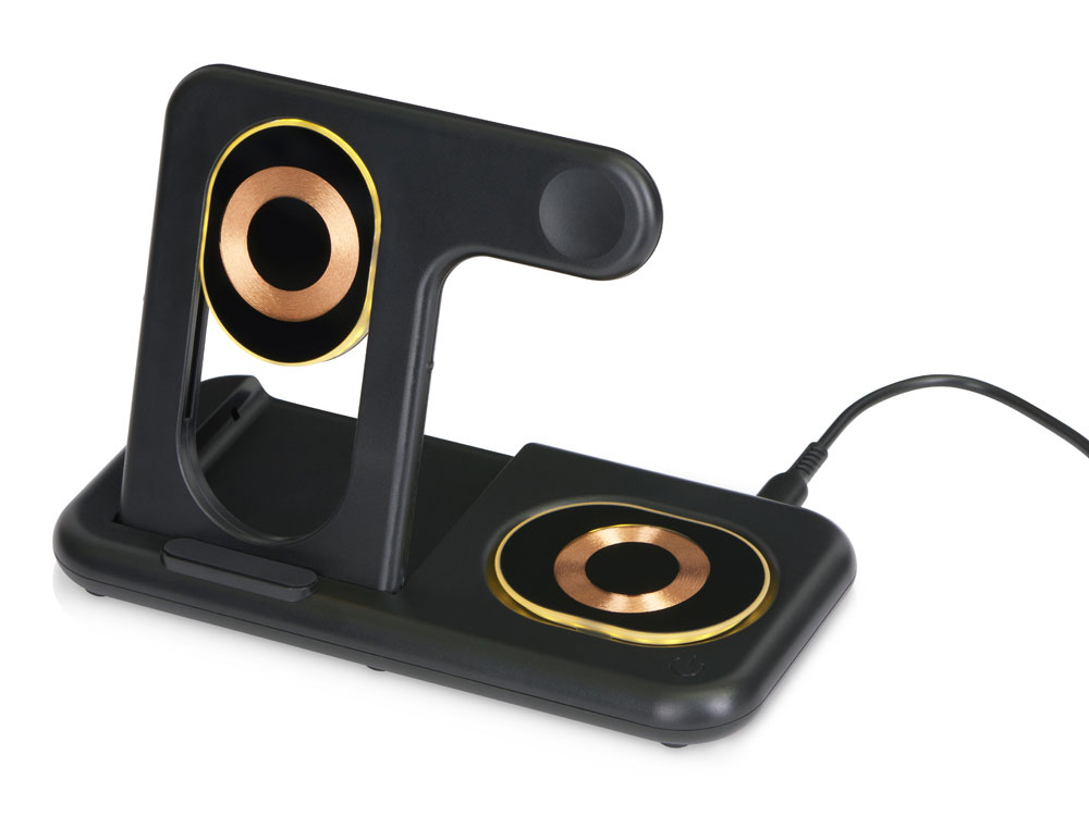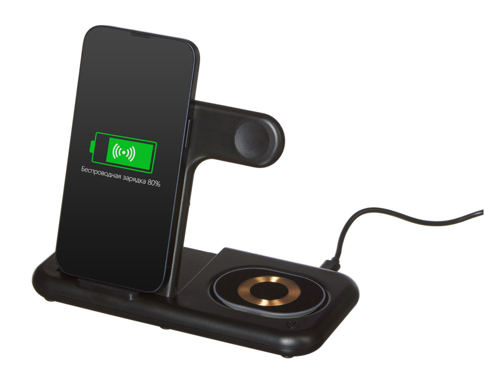 Беспроводная зарядная станция на 3 устройства MajestiQ с прогрессивным дизайном: модуль беспроводной зарядки в вертикальном сегменте станции может менять свое положение по принципу слайдера. Это позволяет настроить положение под размер любого смартфон, не снимая чехла. На станции можно заряжать три беспроводных устройства одновременно: смарт-часы Apple, смартфон и беспроводные наушники. Вместо наушников можно расположить для зарядки второй смартфон. MajestiQ поддерживает быструю беспроводную зарядку 15 Вт. * В зарядные модули встроена атмосферная подсветка с тремя уровнями яркости. Поставляется в сложенном виде, угол наклона можно выставить практически любой. • настраиваемая высота вертикального модуля зарядки • быстрая беспроводная зарядка до 15 Вт • 3 яркости подсветки зарядных мест • регулируемый угол наклона станции * при наличии сетевого адаптера 18 Вт и выше (в комплект не входит).