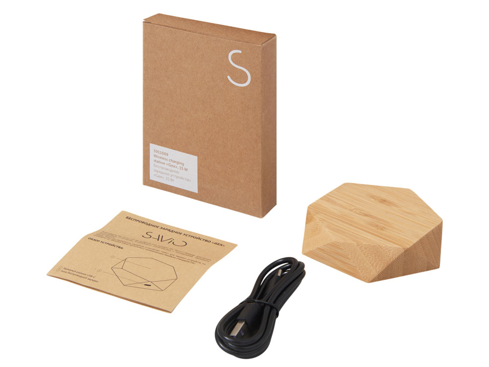 Вдохновляйтесь природой и современными технологиями — представляем беспроводное зарядное устройство мощностью 15 Вт в эксклюзивной геометрической форме из натурального бамбука. Каждая деталь этого устройства — от рельефных граней до теплого текстурированного покрытия — подчеркивает его уникальность и гармонию с природой. Заряжайте смартфон без проводов, наслаждаясь сочетанием функциональности и дизайна, который станет настоящим украшением любого интерьера — будь то домашний стол, рабочее место или лобби офиса. С поддержкой быстрой зарядки до 15 Вт и высокоточной индукционной технологией, это устройство обеспечивает эффективную и безопасную подзарядку. - Эксклюзивная геометрическая форма — оригинальный дизайн, вдохновленный природой и архитектурой - Быстрая беспроводная зарядка — мощность до 15 Вт для совместимых устройств - Натуральный бамбук — экологичный, прочный и эстетически привлекательный материал - Уникальный элемент декора — идеально вписывается в минималистичные и экологичные интерьеры - Идеальный корпоративный подарок — нестандартно, технологично и с заботой