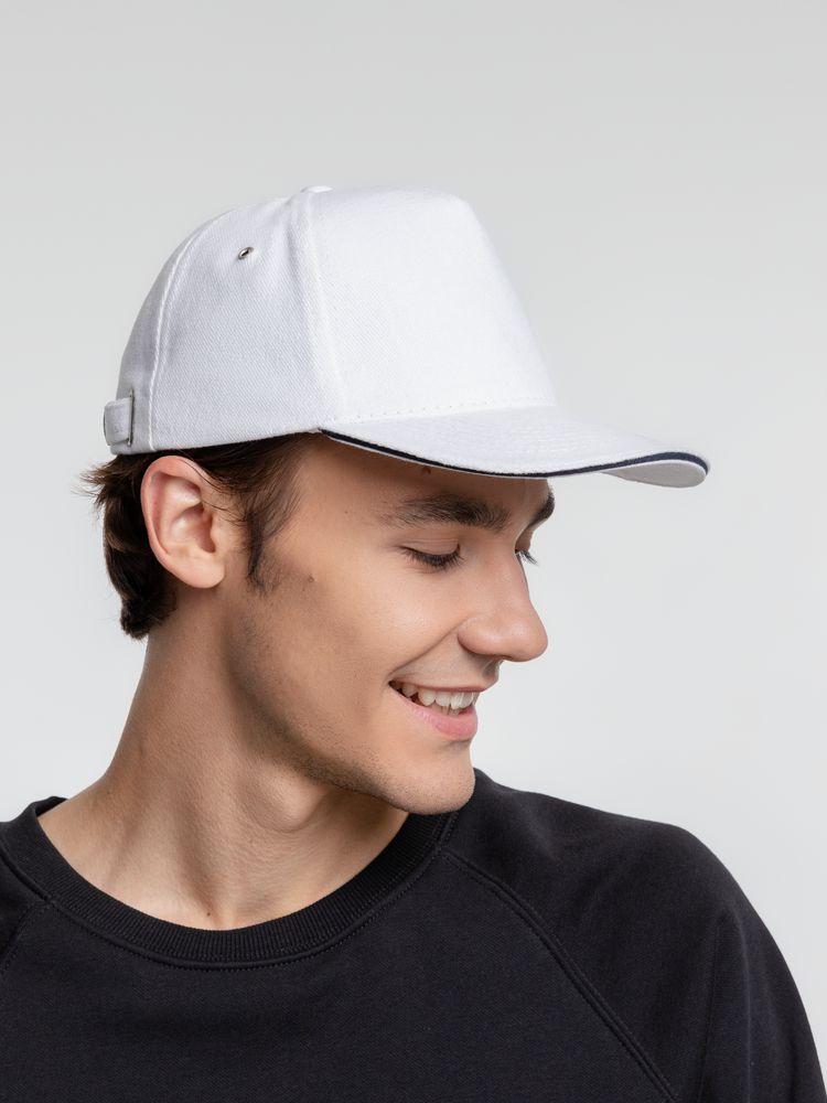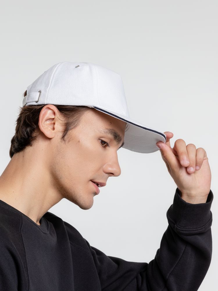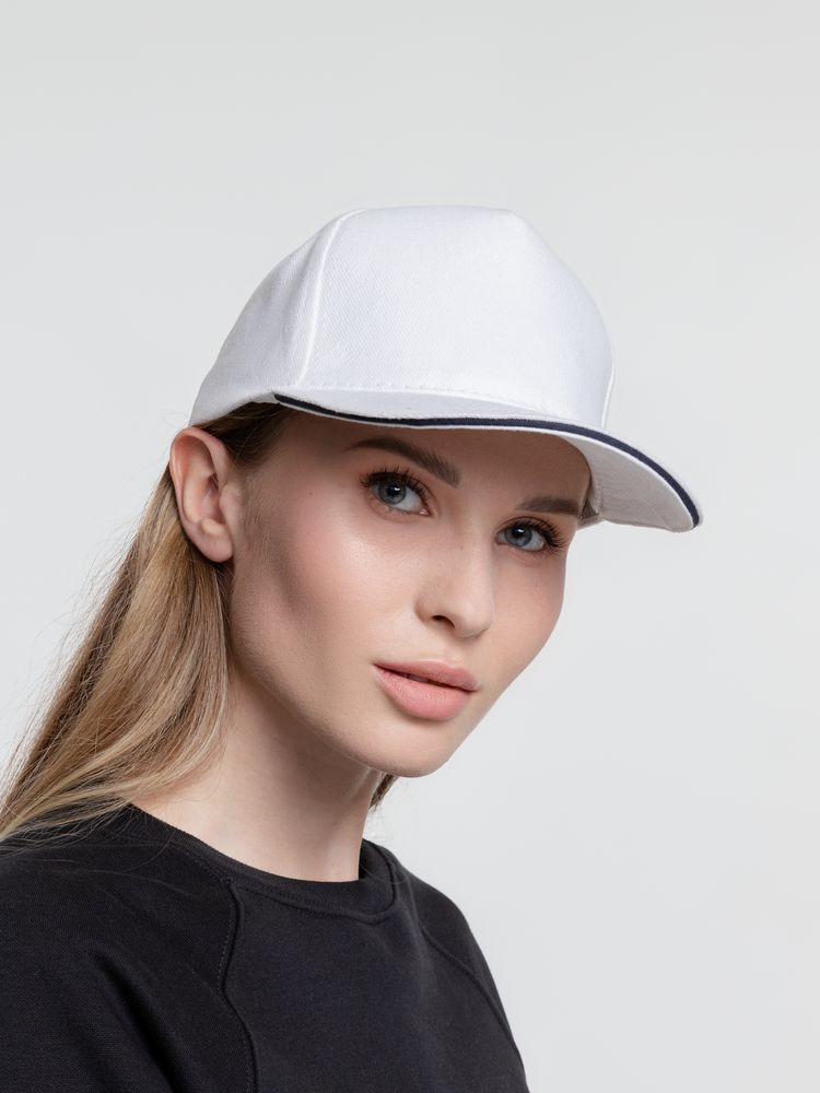 Бейсболка Classic, белая с темно-синим кантом купить оптом и в розницу с нанесением логотипа в Санкт-Петербурге