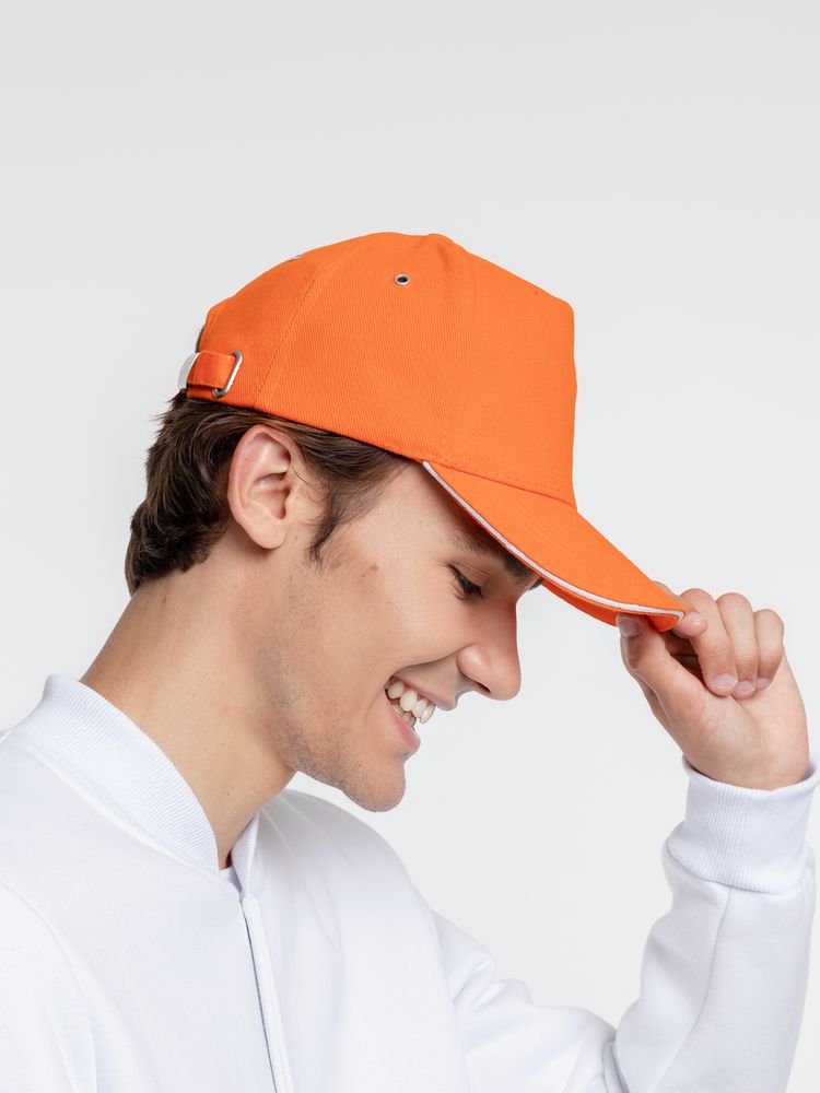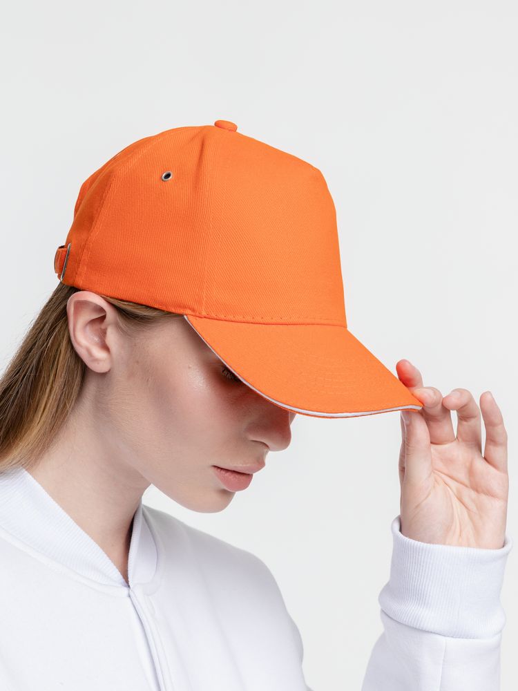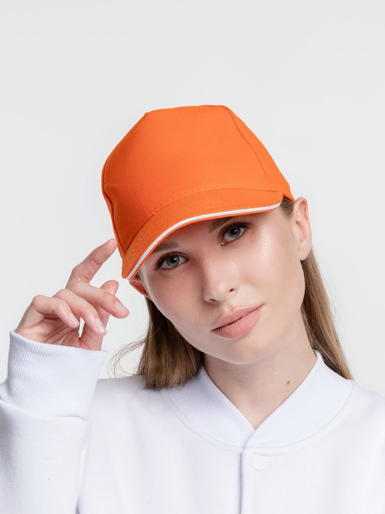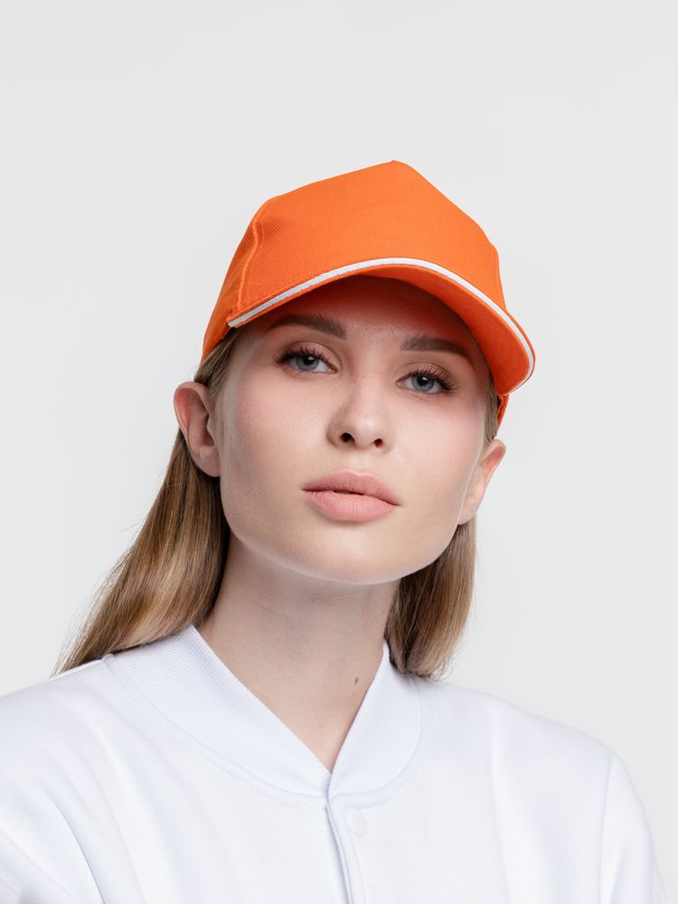 Бейсболка Classic, оранжевая с белым кантом купить оптом и в розницу с нанесением логотипа в Санкт-Петербурге