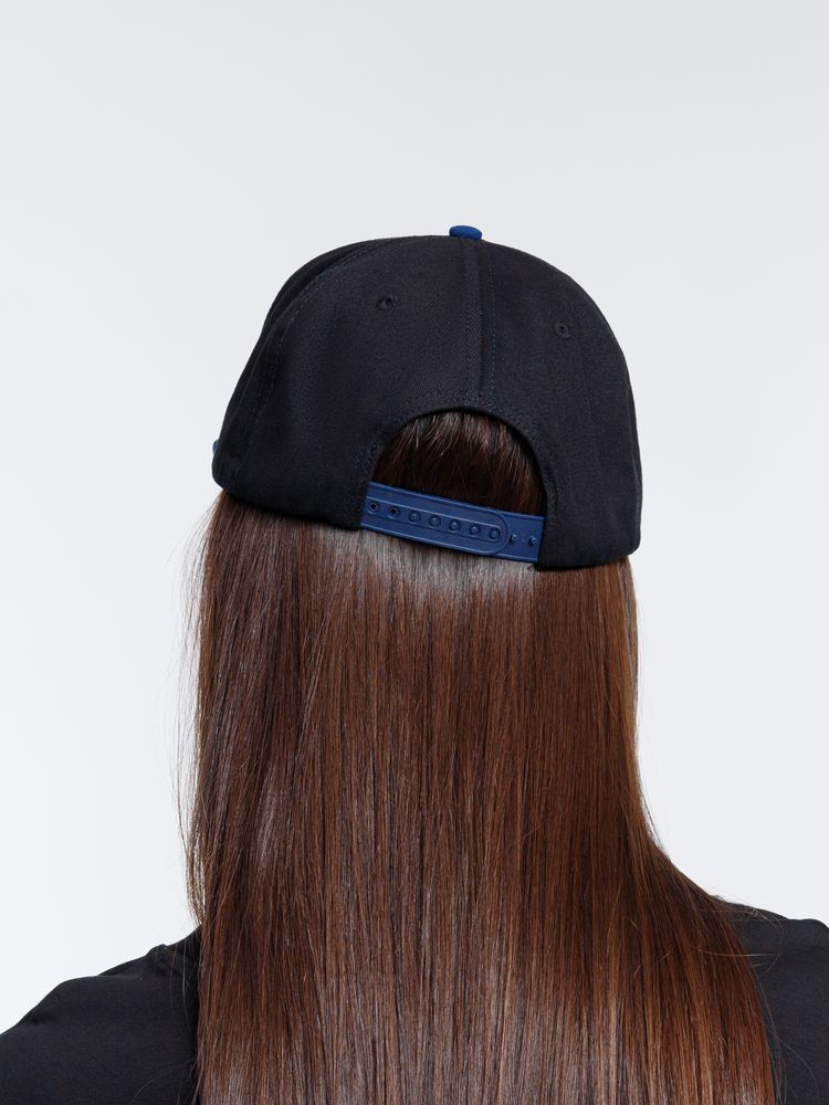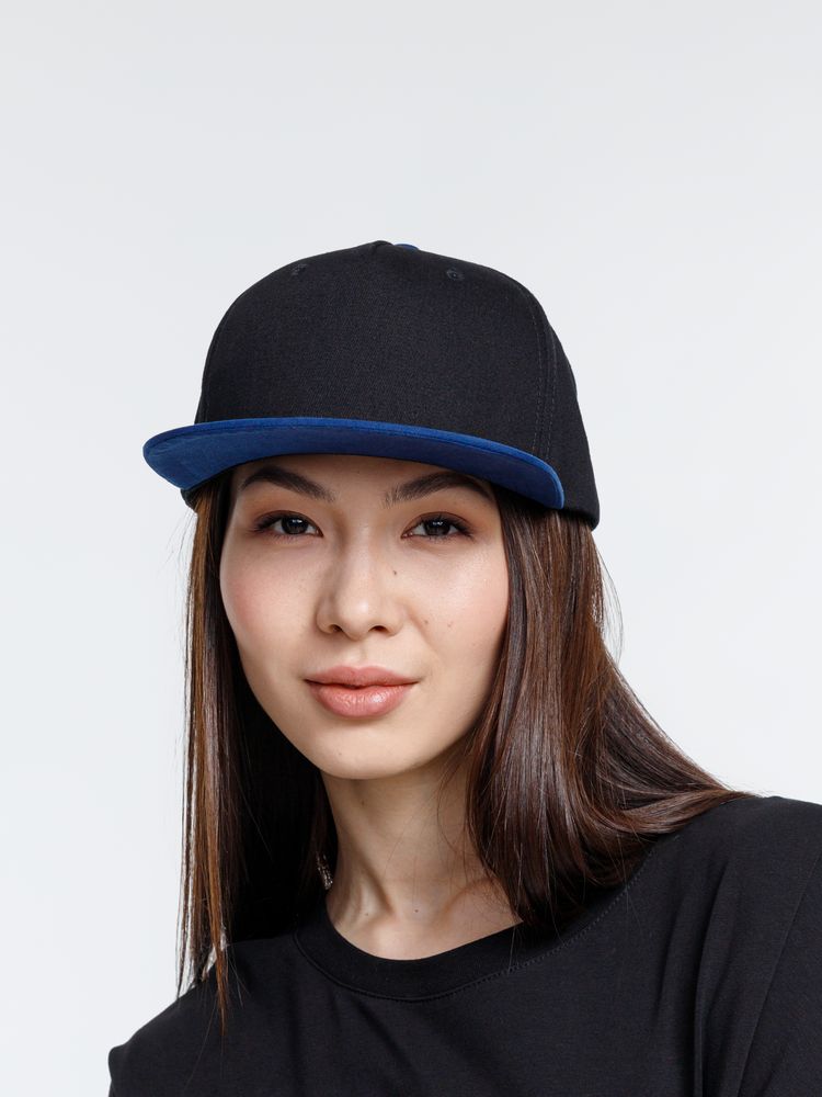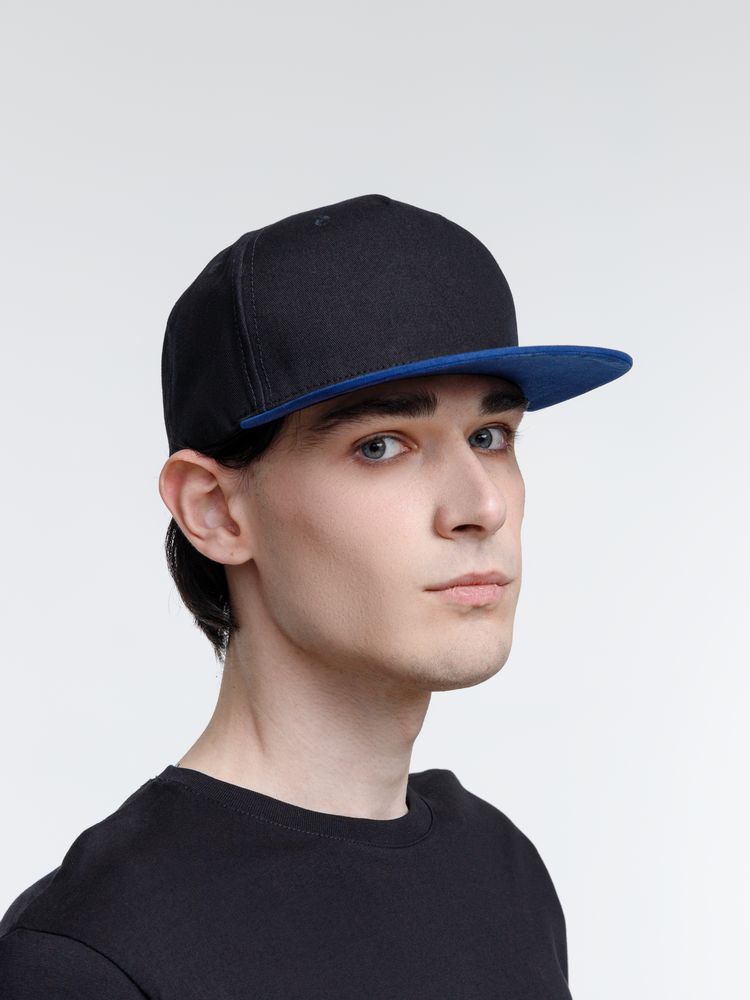 Бейсболка Foreside с прямым козырьком, черная с синим купить оптом и в розницу с нанесением логотипа в Санкт-Петербурге