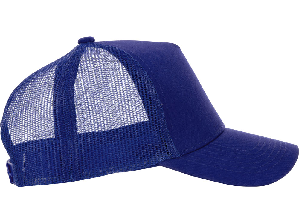 Пяти панельная бейсболка с передней частью из хлопка для комфорта головы и лба. Задняя часть из пластиковой сетки, которая отвечает за циркуляцию воздуха и обеспечивает изделию износостойкость. Для подгонки по размеру головы — пластиковая застежка.