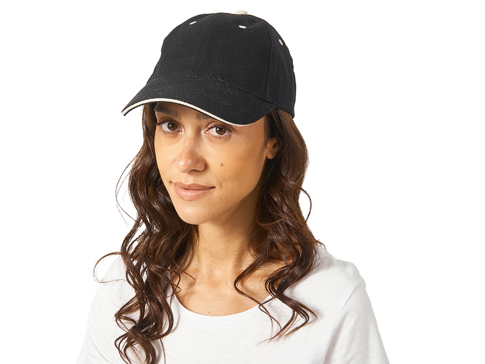 Стильная 6-панельная промо-бейсболка с контрастными деталями. Отличный выбор для яркого и запоминающегося брендинга. - Классическая бейсболка сшита из 6 панелей. - Яркие акценты – контрастная верхняя пуговичка, а также вышитые люверсы – стильная деталь, привлекающая внимание и усиливающая узнаваемость бренда. - Эффективная вентиляция: люверсы обеспечивают комфорт при носке - Премиальный вид козырька конструкции сэндвич с декоративным контрастным кантом по краю, не только эстетично, но и повышает жесткость и долговечность козырька. - Удобная посадка - регулируемая застежка на липучке (велкро) гарантирует идеальное прилегание на любую голову.