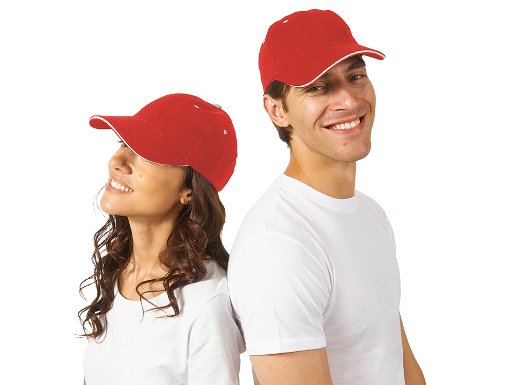 Стильная 6-панельная промо-бейсболка с контрастными деталями. Отличный выбор для яркого и запоминающегося брендинга. - Классическая бейсболка сшита из 6 панелей. - Яркие акценты – контрастная верхняя пуговичка, а также вышитые люверсы – стильная деталь, привлекающая внимание и усиливающая узнаваемость бренда. - Эффективная вентиляция: люверсы обеспечивают комфорт при носке - Премиальный вид козырька конструкции сэндвич с декоративным контрастным кантом по краю, не только эстетично, но и повышает жесткость и долговечность козырька. - Удобная посадка - регулируемая застежка на липучке (велкро) гарантирует идеальное прилегание на любую голову.