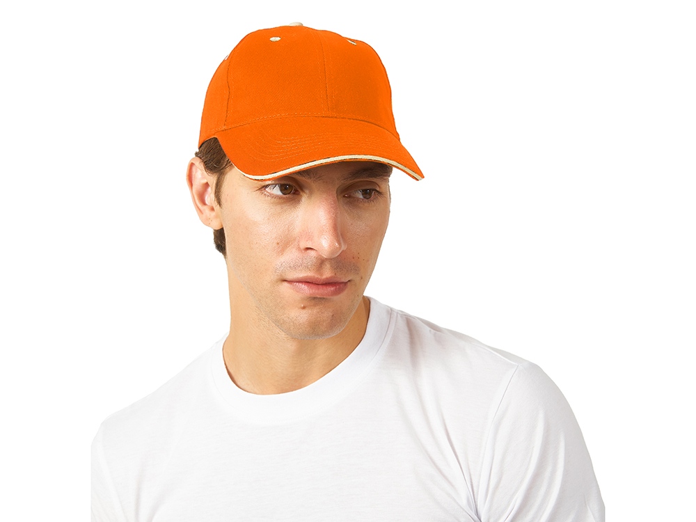Стильная 6-панельная промо-бейсболка с контрастными деталями. Отличный выбор для яркого и запоминающегося брендинга. - Классическая бейсболка сшита из 6 панелей. - Яркие акценты – контрастная верхняя пуговичка, а также вышитые люверсы – стильная деталь, привлекающая внимание и усиливающая узнаваемость бренда. - Эффективная вентиляция: люверсы обеспечивают комфорт при носке - Премиальный вид козырька конструкции сэндвич с декоративным контрастным кантом по краю, не только эстетично, но и повышает жесткость и долговечность козырька. - Удобная посадка - регулируемая застежка на липучке (велкро) гарантирует идеальное прилегание на любую голову.