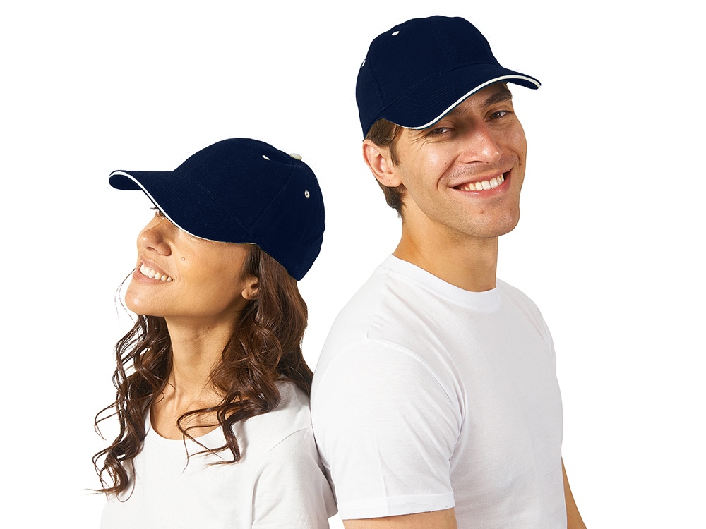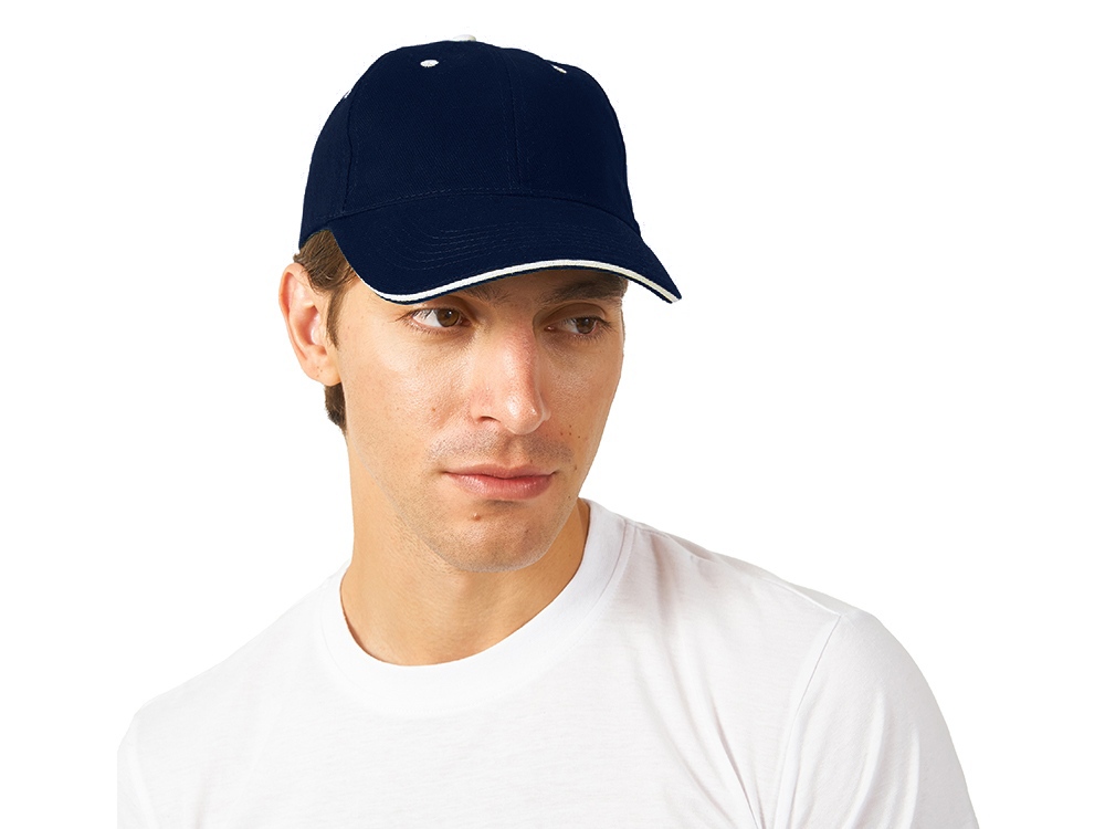 Стильная 6-панельная промо-бейсболка с контрастными деталями. Отличный выбор для яркого и запоминающегося брендинга. - Классическая бейсболка сшита из 6 панелей. - Яркие акценты – контрастная верхняя пуговичка, а также вышитые люверсы – стильная деталь, привлекающая внимание и усиливающая узнаваемость бренда. - Эффективная вентиляция: люверсы обеспечивают комфорт при носке - Премиальный вид козырька конструкции сэндвич с декоративным контрастным кантом по краю, не только эстетично, но и повышает жесткость и долговечность козырька. - Удобная посадка - регулируемая застежка на липучке (велкро) гарантирует идеальное прилегание на любую голову.