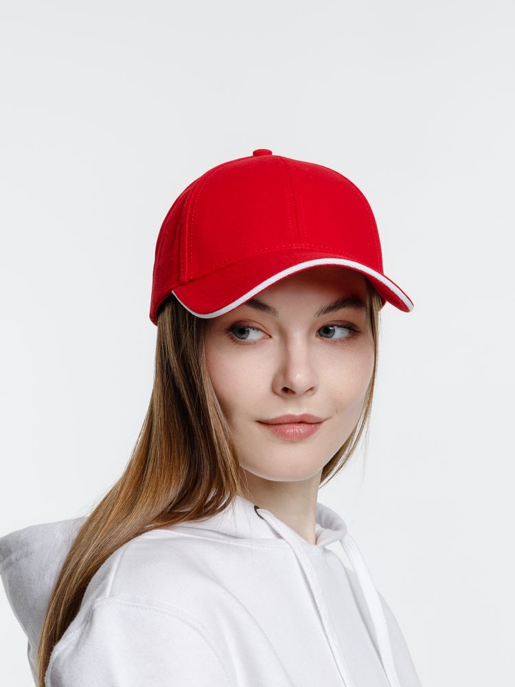 Бейсболка Spiker, красная с белым купить оптом и в розницу с нанесением логотипа в Санкт-Петербурге