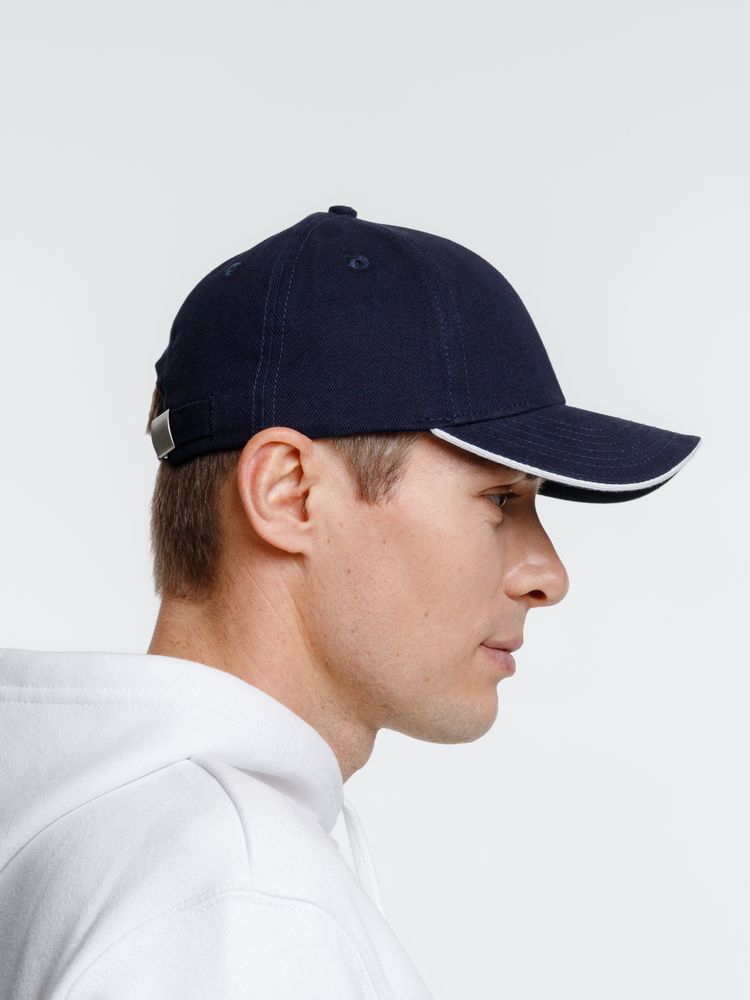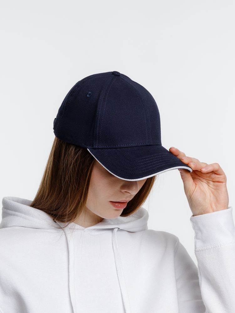 Бейсболка Spiker, темно-синяя с белым купить оптом и в розницу с нанесением логотипа в Санкт-Петербурге