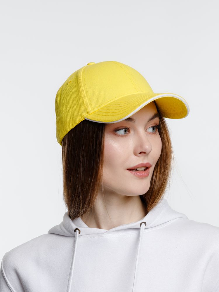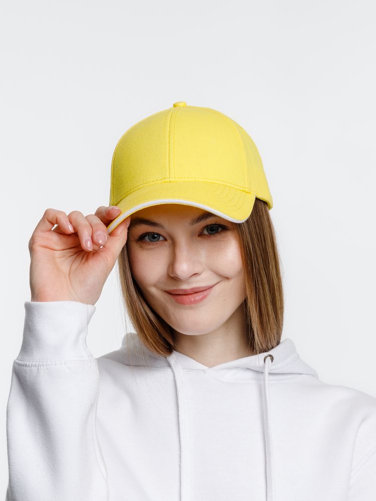 Бейсболка Spiker, желтая с белым купить оптом и в розницу с нанесением логотипа в Санкт-Петербурге