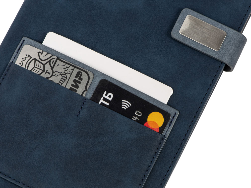 Бизнес-блокнот Freya в твердой обложке позволит вам не только навести порядок в вашем расписании и делах, но и не даст потерять важные визитки — для них прямо на обложке предусмотрен отдельный карман. Карман имеет три отделения: два под размер визиток или банковских карт и одно большего размера. Клапан позволяет сохранить блокнот в отличном состоянии в течение долгого времени даже при ежедневном использовании, не сминая листы. Бумажный блок выполнен из бумаги, полученной из древесины из специальных восполняемых лесных ресурсов, имеет сертификат FSC, международной некоммерческой организации лесного попечительского совета. Линовка — недатированный ежедневник, а на первых страницах вы встретите специальные листы для постановки целей на год и подведения итогов, а также другие трекеры. Отдельно отметим гладкость бумаги — писать на ней одно удовольствие. - 128 листов - твердая обложка обеспечивает надежность конструкции блокнота - бумага из восполняемых лесных ресурсов - ляссе для быстрой навигации - трекеры и специальные страницы для планирования