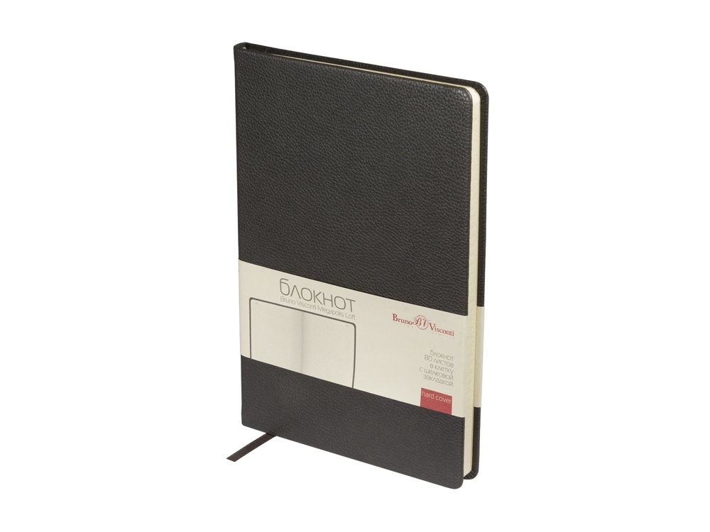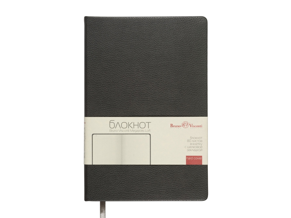 Серия офисных блокнотов Megapolis Loft от Bruno Visconti формата А5 - функциональный бизнес-аксессуар для ведения рабочих и личных записей. В нем нет ничего лишнего, но, благодаря высококачественному переплетному материалу из экокожи, он выглядит презентабельно. Твердая обложка с приятной фактурой, углами закругленной формы, книжный переплет и ляссе в цвет обложки наделяют блокнот практичностью. 80 листов блока в серую клетку помогают вести записи четко и аккуратно. Блок изготовлен из бежевой бумаги плотностью 70 г/кв.м.
