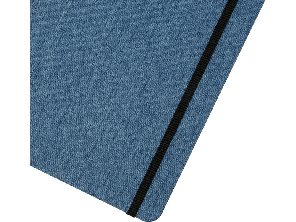 Блокнот формата А5 с отделкой из переработанного ПЭТ. Содержит 96 листов в линию плотностью 70 г/м², изготовленных из переработанной бумаги, с петлей для ручки и лентой-закладкой. В упаковке из картона. Recycled Plastic, Переработанная бумага. #?0:>2:0: FSC Recycled 100% P5.1 CU-COC-877277. FSC Recycled 100% P7.1 CU-COC-877277.