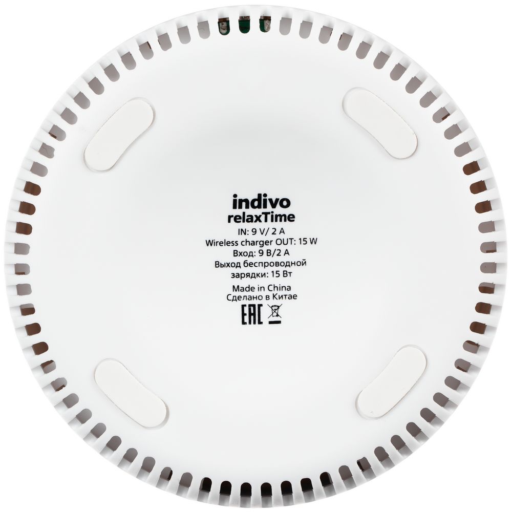 Bluetooth-колонка с беспроводной зарядкой relaxTime, белая купить оптом и в розницу с нанесением логотипа в Санкт-Петербурге