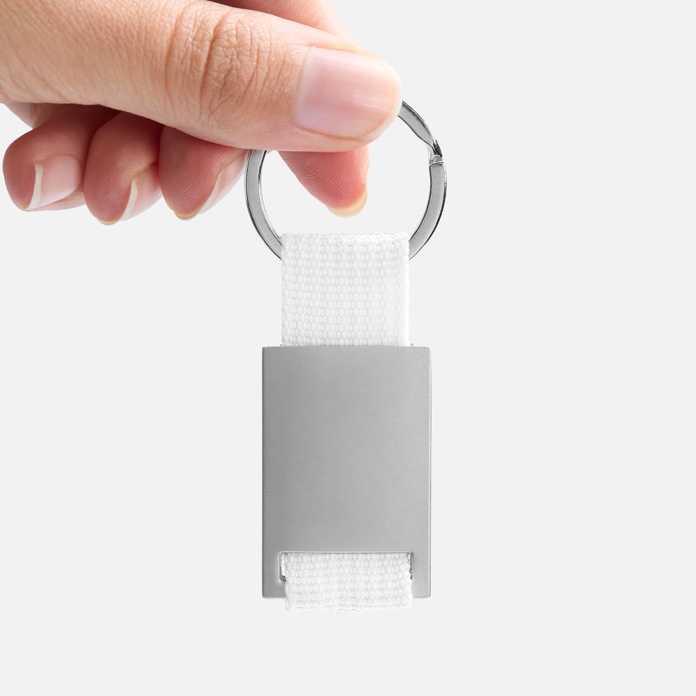 Брелок Inlet с тканевой вставкой, белый купить оптом и в розницу с нанесением логотипа в Санкт-Петербурге
