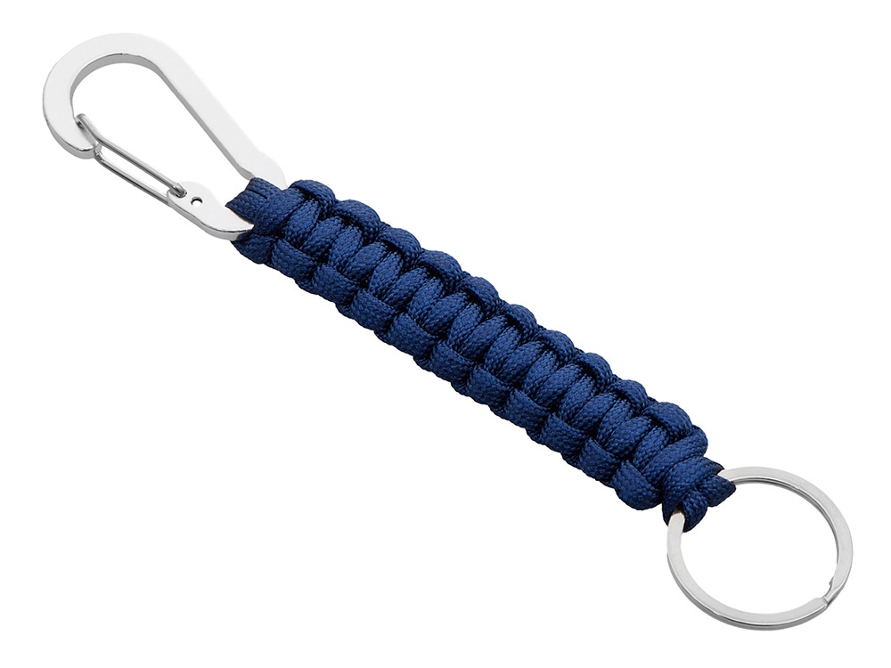 Брелок-веревочка Austere с карабином и кольцом, темно-синий с серебристым купить оптом и в розницу с нанесением логотипа в Санкт-Петербурге