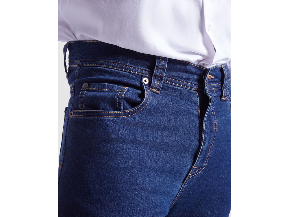 Джинсы мужские. · Классический крой и средняя посадка. · Пояс с 5 шлевками. · Застежка на металлическую молнию. · Два передних кармана и карман для монет. · Два задних кармана. · Полуприлегающий силуэт из ткани с эластаном.