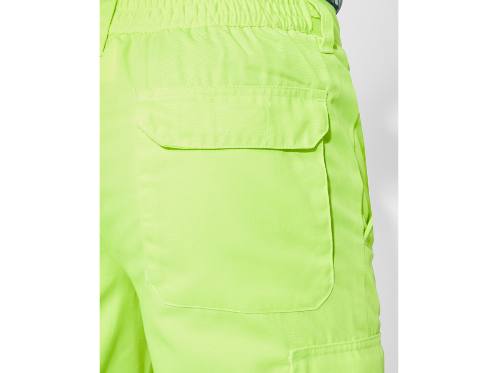 Брюки неоново-желтого цвета. · Регулируемый эластичный пояс сзади. · Два кармана спереди. · Функциональный карман сзади с клапаном на липучке. · Два боковых объемных карманы с клапаном на липучке. · Две горизонтальные светоотражающие полосы.