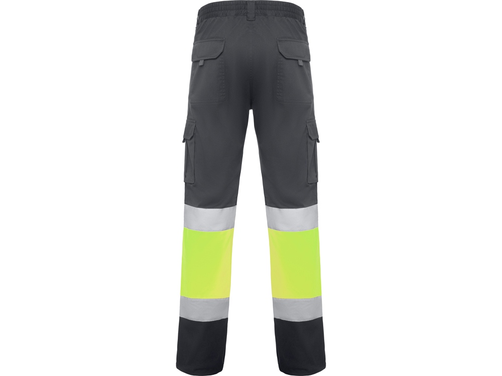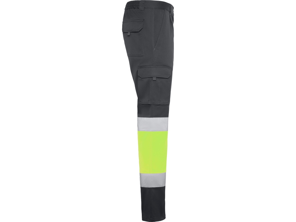 Светоотражающие удлиненные брюки с несколькими карманами. · Удобная и эластичная ткань. · Эластичный пояс сзади. · Два передних кармана. · Два задних кармана с клапаном и застежкой·липучкой. · Два плиссированных боковых кармана с клапаном и застежкой на липучке. · Двухцветная комбинация со светоотражающими полосами.