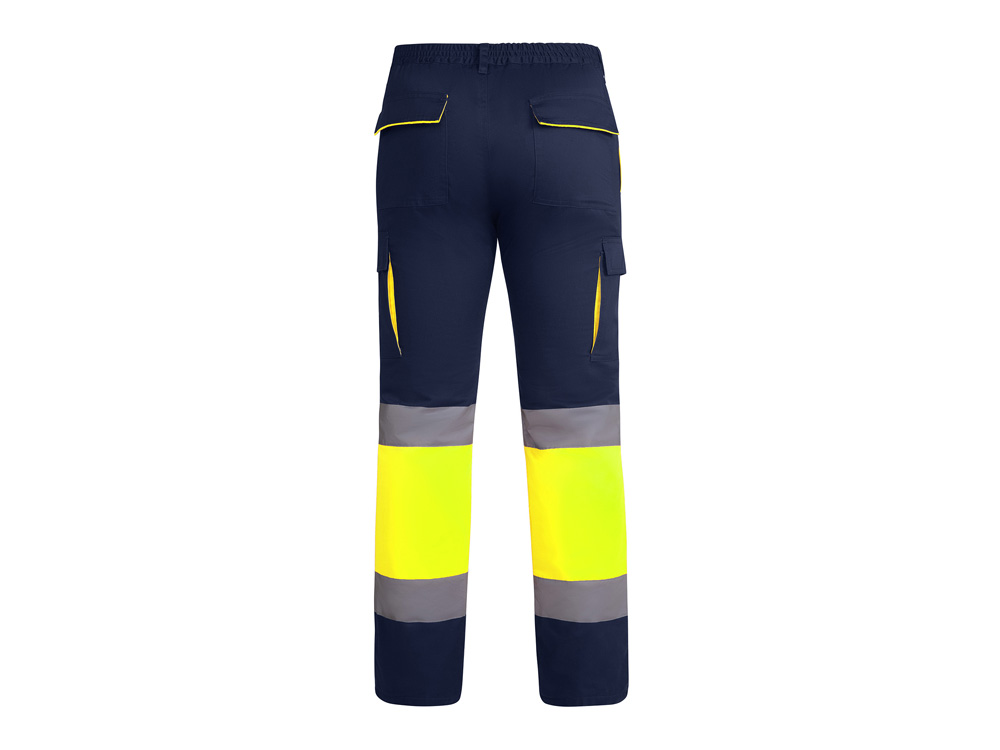 Светоотражающие удлиненные брюки на подкладке с несколькими карманами. Двухцветная комбинация со светоотражающими полосами. Контрастные неоновые детали на карманах. Подкладка из флиса. Эластичный пояс сзади. Два передних кармана. Два задних кармана с клапаном и застежкой на липучке. Два плиссированных боковых кармана с клапаном и застежкой на липучке.