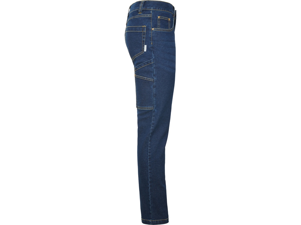Джинсы с несколькими карманами. · Застежка на металлическую молнию и пуговицу. · Пояс со шлевками. · Один карман карго с левой стороны, с клапаном на липучке. · Один карман на молнии с левой стороны. · Двойной узкий карман с правой стороны. · Контрастные отстрочки.