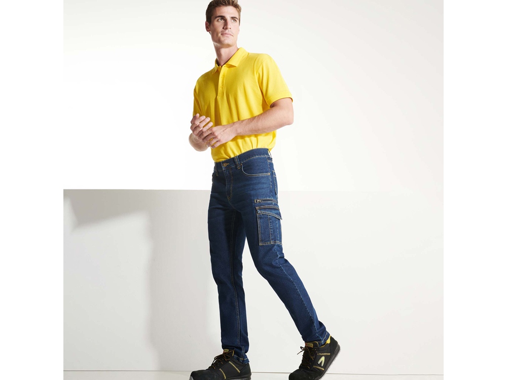 Джинсы с несколькими карманами. · Застежка на металлическую молнию и пуговицу. · Пояс со шлевками. · Один карман карго с левой стороны, с клапаном на липучке. · Один карман на молнии с левой стороны. · Двойной узкий карман с правой стороны. · Контрастные отстрочки.