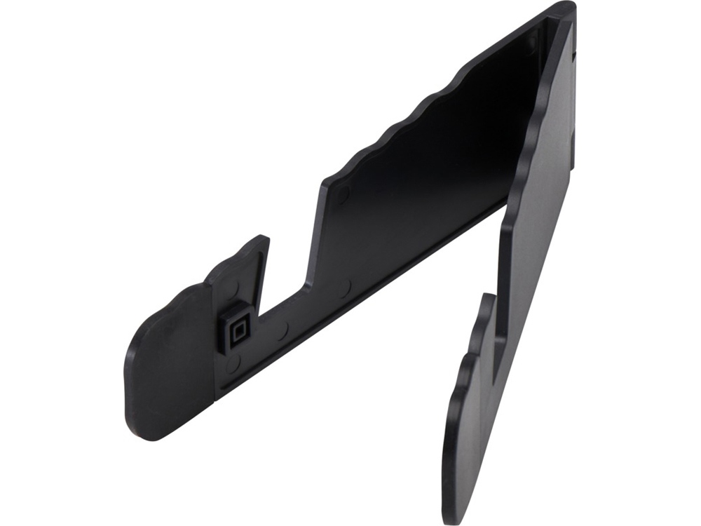 Buna складная подставка для планшета и телефона из переработанной пластмассы, черный купить оптом и в розницу с нанесением логотипа в Санкт-Петербурге