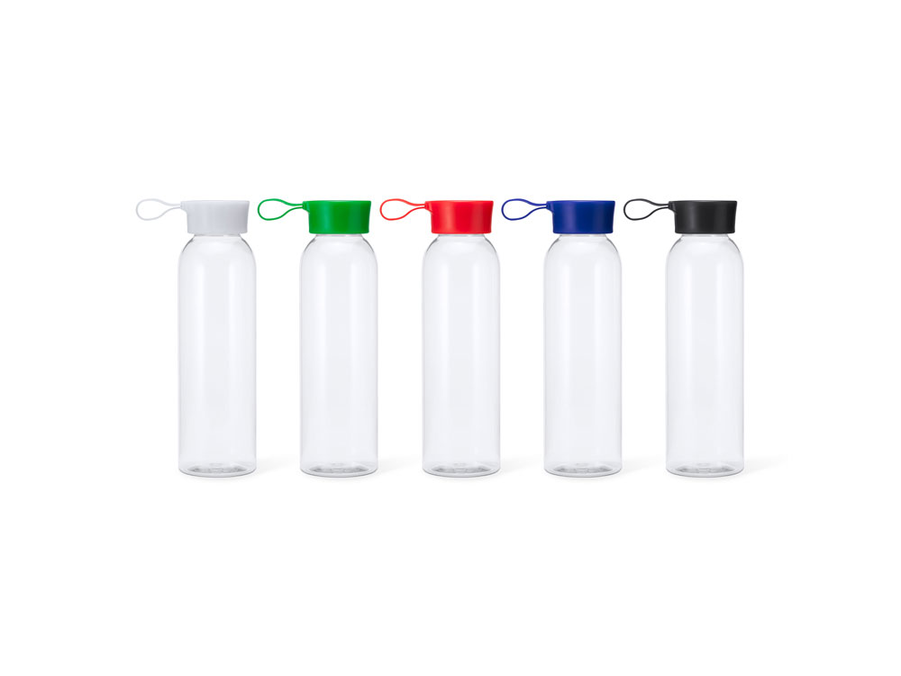 Бутылка из тритана 600 мл. Крышка с цветным ремешком для переноски. Не рекомендуется использовать в посудомоечной машине.
