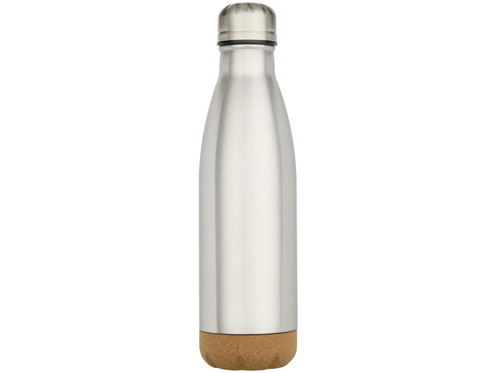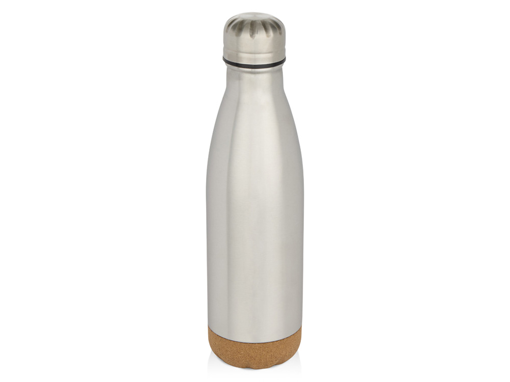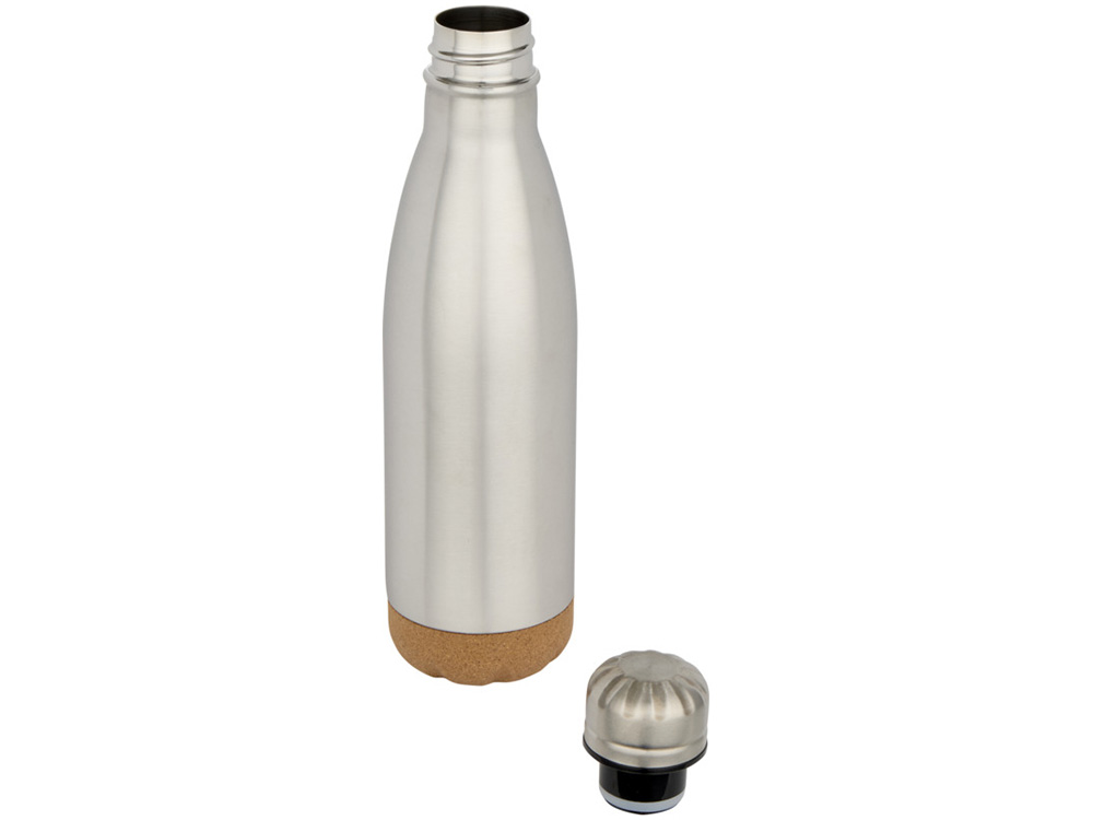 Бутылка для воды Cove из нержавеющей стали с двойными стенками и вакуумной изоляцией, объемом 500 мл, с пробковыми деталями - Matted silver купить оптом и в розницу с нанесением логотипа в Санкт-Петербурге