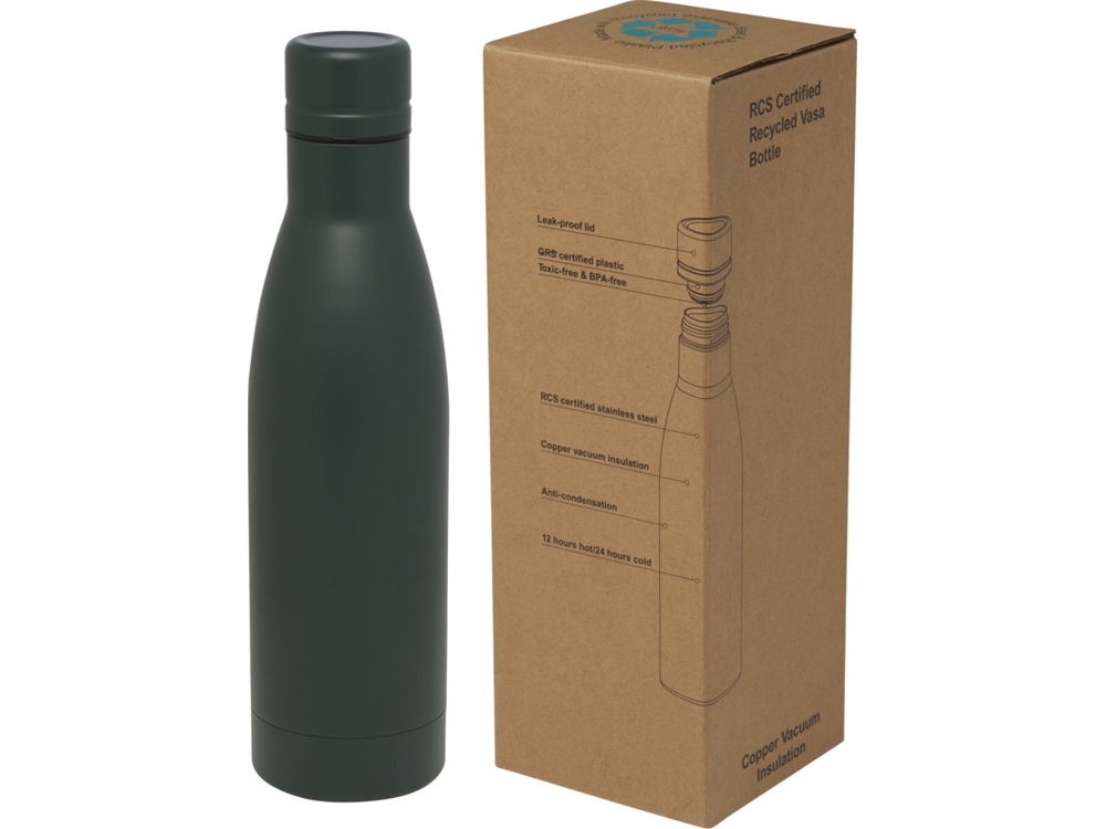 Ваши напитки останутся горячими в течение 12 часов и холодными в течение 24 часов в медной бутылке Vasa с вакуумной изоляцией. Бутылка с двойной стенкой и сделана из переработанной нержавеющей стали, сертифицированной по стандарту RCS, с вакуумной изоляцией и медным покрытием на внутренней стенке, что позволит вашему напитку оставаться абсолютно горячим или холодным словно лед, в зависимости от того, что вам нужно. Без содержания BPA, протестировано и одобрено согласно немецкому законодательству о безопасности пищевых продуктов (LFGB) и проверено на содержание фталатов согласно нормам REACH. Объем: 500 мл. Поставляется в подарочной коробке из экологичного и ответственного материала. 87% Recycled stainless steel, 13% Пластик PP. #?0:>2:0: FSC Mix Credit P5.1 CU-COC-877277.