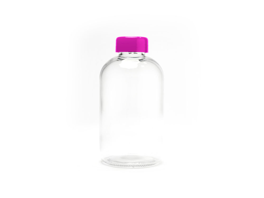 Стеклянная бутылка емкостью 600 мл. включает инновационный неопреновый чехол самых разных цветов с ручкой для переноски.