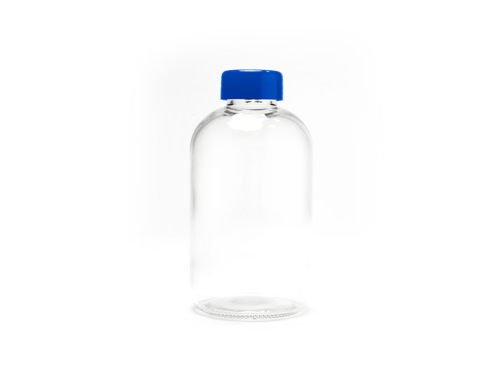 Стеклянная бутылка емкостью 600 мл. включает инновационный неопреновый чехол самых разных цветов с ручкой для переноски.