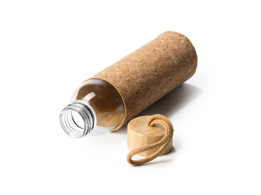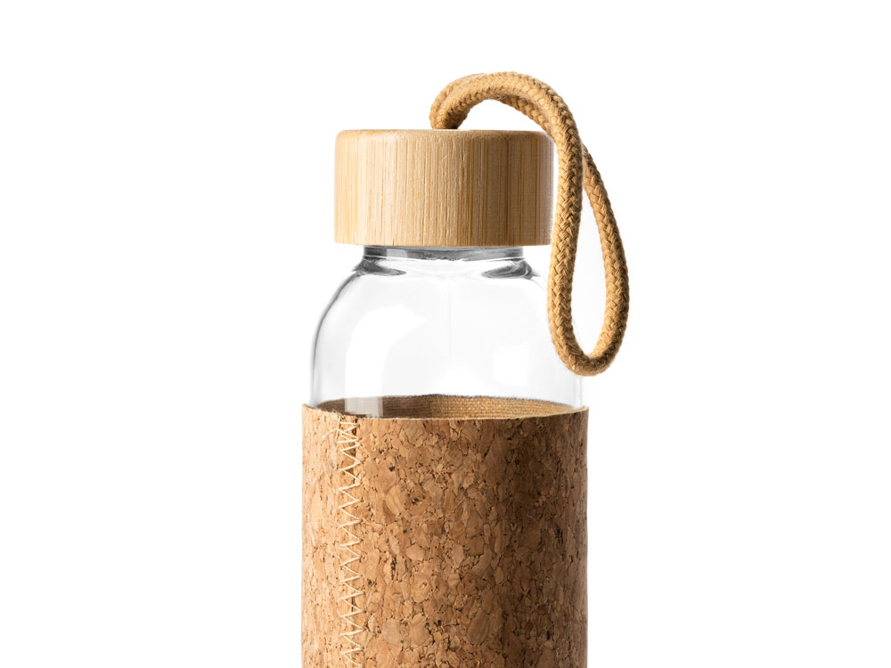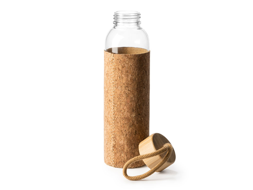 Стеклянная бутылка в чехле из натуральной пробки. Бамбуковая крышка с практичной ручкой для переноски, поэтому вы можете брать ее с собой куда угодно. Емкость 500 мл.