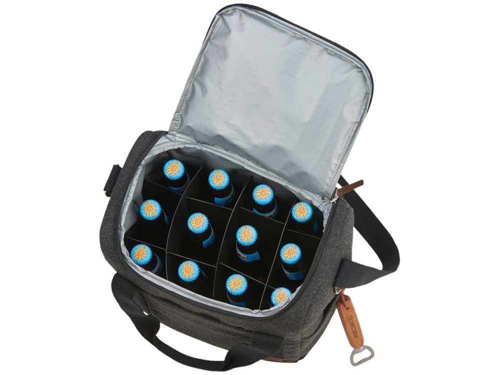 Campster кулер для 12-ти бутылок. Часть серии Campster от бренда Field & Co.®. Вдохновение было заимствовано из ретро-кемпинга, образ школьного скаута дополнен современными потребностями. Эта стильная сумка-кулер сочетает в себе шерсть /полиэстер и виниловые акценты с функцией изолированного кулера с разделителем бутылок. Вставки создают отдельные отсеки для двенадцати бутылок емкостью 350 мл. Когда они не используются, их можно сложить на дно сумки. В комплекте открывалка Field & CO. Полиэстер и шерсть.