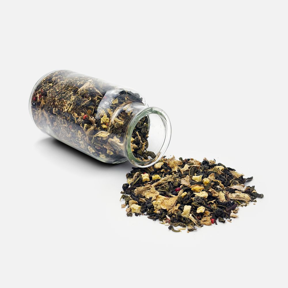 Чай «Сокочай», зеленый с соком имбиря, яблоком, гвоздикой и розовым перцем купить оптом и в розницу с нанесением логотипа в Санкт-Петербурге