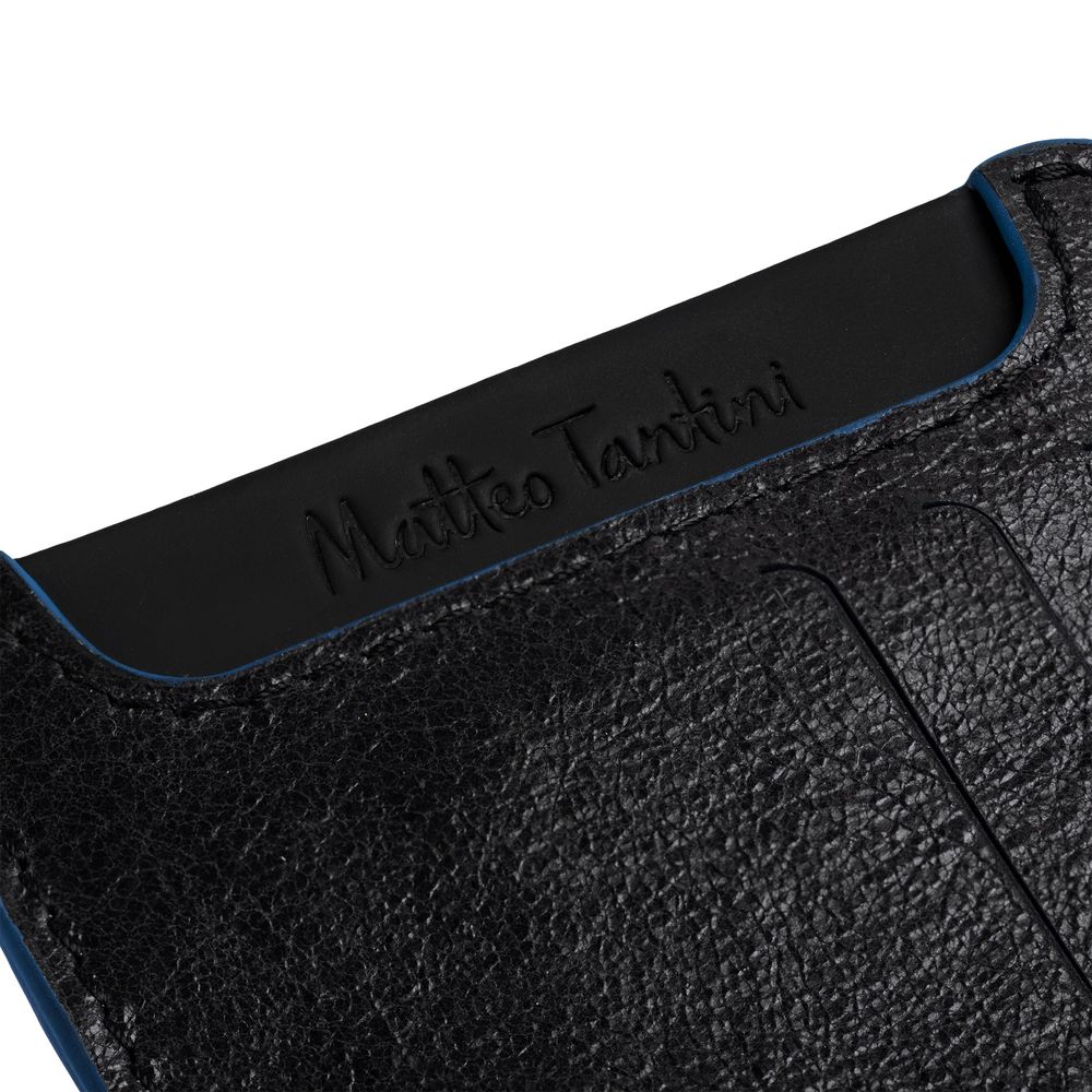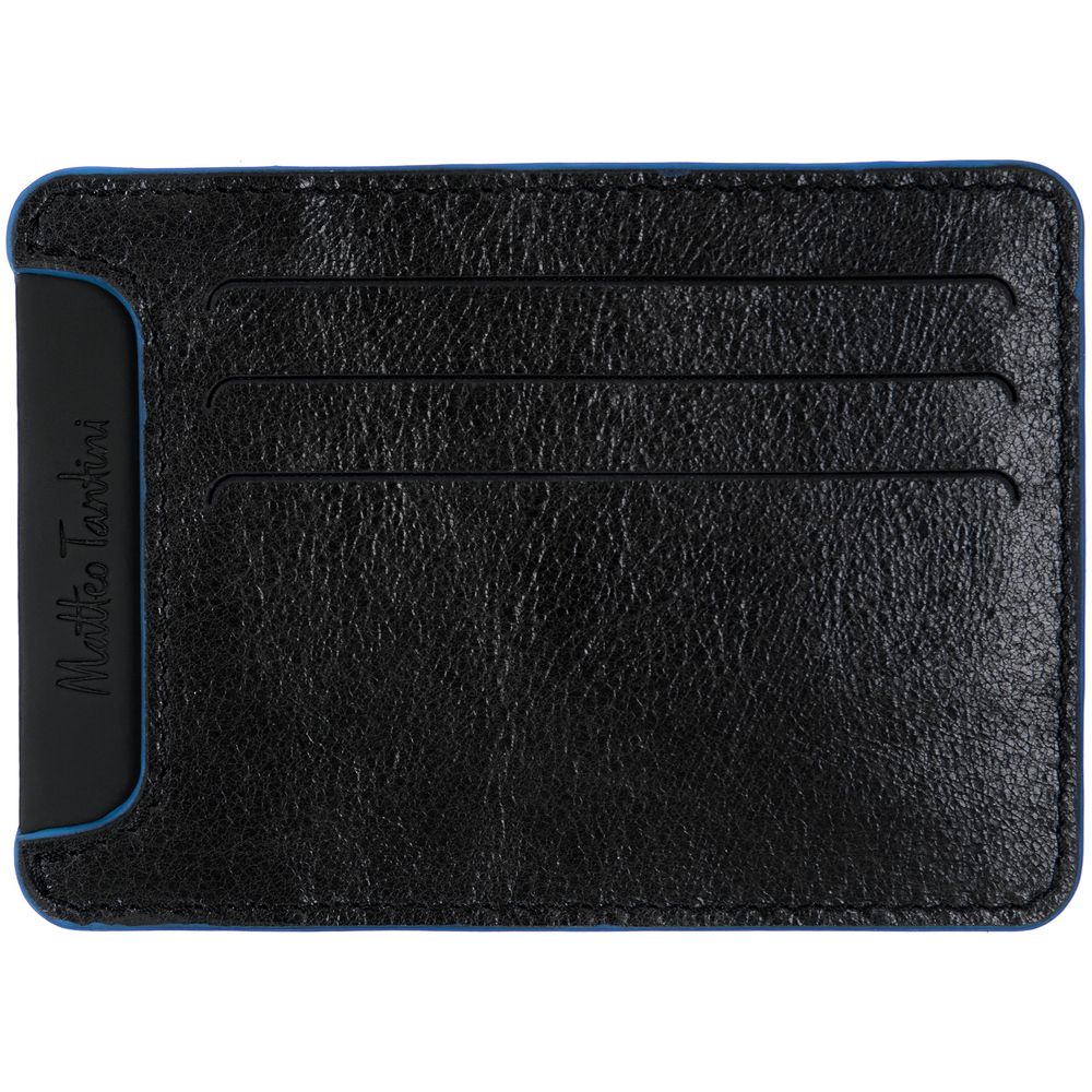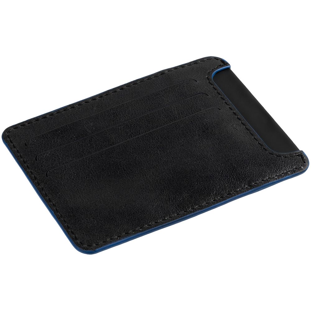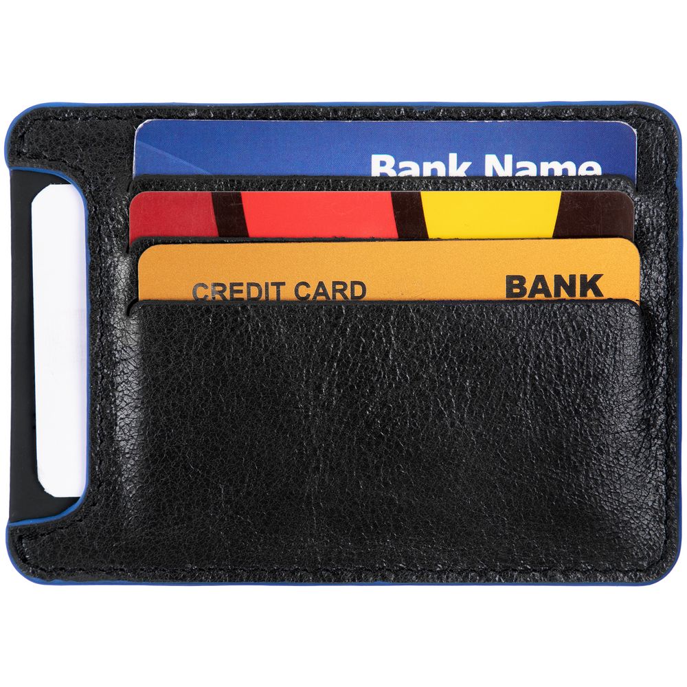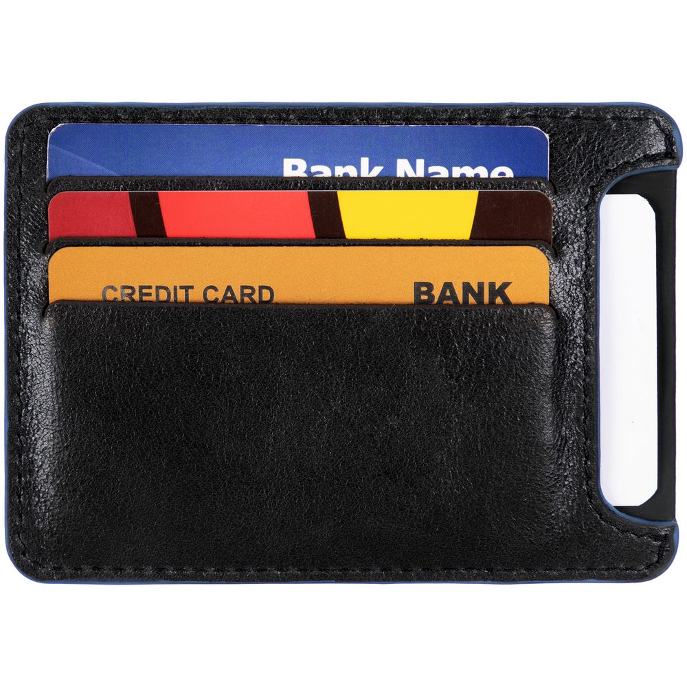 Чехол для карточек Arrival, черный с синим купить оптом и в розницу с нанесением логотипа в Санкт-Петербурге