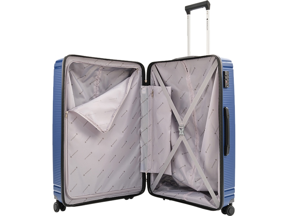 Тринидад (что в переводе с испанского значит Святая Троица) — флагманский корабль первого кругосветного плаванья под командованием Фернана Магеллана. Коллекция TRINIDAD от бренда MAGELLAN – это коллекция, микро-реберный дизайн которой вдохновлён античной архитектурой Греции, матово-глянцевая фактура с Т начертанием отсылает к названию коллекции. Чемоданы TRINIDAD выполнены из легкого и прочного полипропилена, который защитит ваши вещи от ударов и повреждений во время перевозки. Внутреннее пространство чемоданов удобно организовано и оборудовано упаковочными ремнями, позволяющими зафиксировать ваши вещи внутри. - Втяжная ручка для переноски - Двойная выдвижная телескопическая ручка - Функция увеличения объема в моделях формата ручная кладь - Микро реберный дизайн с матово-глянцевой фактурой - Интегрированная система крепления колес - Двойная четырехколесная система - Встроенный кодовый замок с функцией TSA - Тканевый разделитель на молнии - Боковой карман на застежке молнии - Брендированный тканьевый подклад из полиэстера - Перекрестные упаковочные ремни