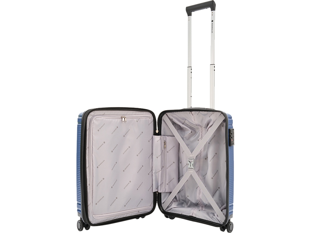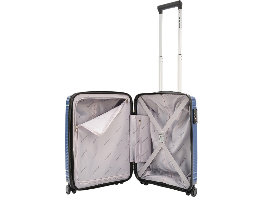 Тринидад (что в переводе с испанского значит Святая Троица) — флагманский корабль первого кругосветного плаванья под командованием Фернана Магеллана. Коллекция TRINIDAD от бренда MAGELLAN – это коллекция, микро-реберный дизайн которой вдохновлён античной архитектурой Греции, матово-глянцевая фактура с Т начертанием отсылает к названию коллекции. Чемоданы TRINIDAD выполнены из легкого и прочного полипропилена, который защитит ваши вещи от ударов и повреждений во время перевозки. Внутреннее пространство чемоданов удобно организовано и оборудовано упаковочными ремнями, позволяющими зафиксировать ваши вещи внутри. - Втяжная ручка для переноски - Двойная выдвижная телескопическая ручка - Функция увеличения объема в моделях формата ручная кладь - Микро реберный дизайн с матово-глянцевой фактурой - Интегрированная система крепления колес - Двойная четырехколесная система - Встроенный кодовый замок с функцией TSA - Тканевый разделитель на молнии - Боковой карман на застежке молнии - Брендированный тканьевый подклад из полиэстера - Перекрестные упаковочные ремни