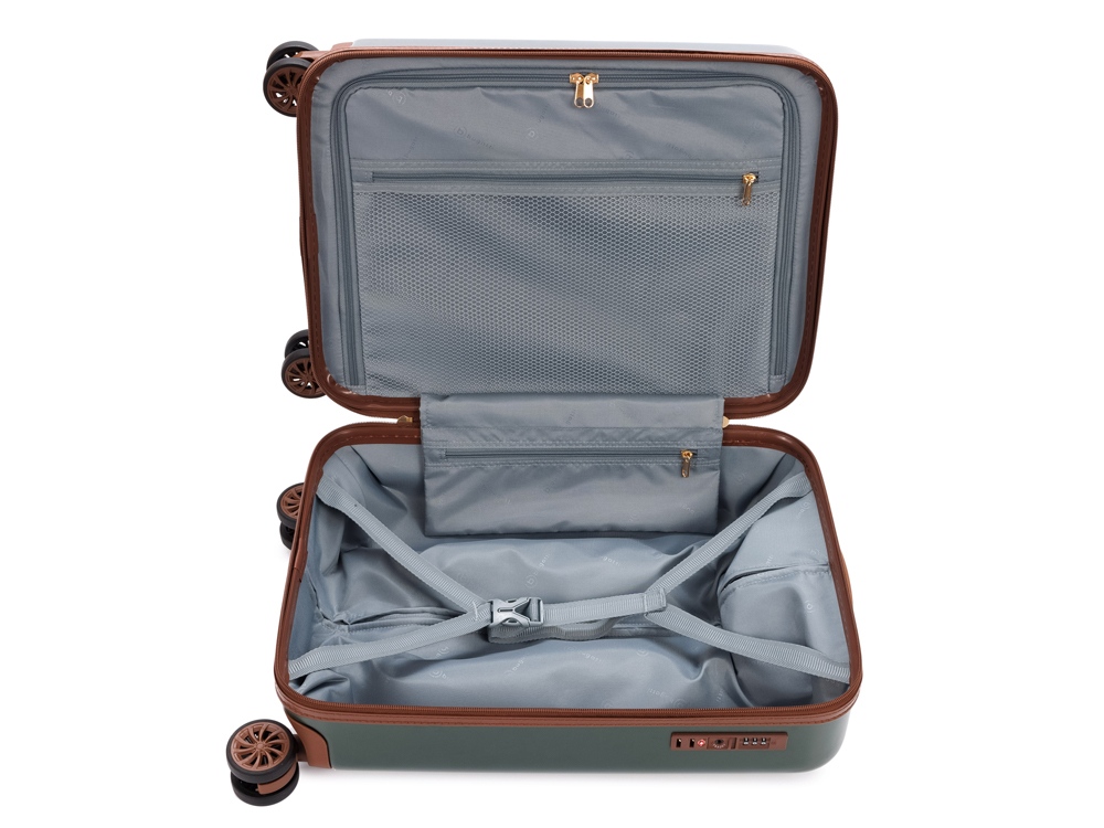AMELIA - невероятная коллекция чемоданов в ретро стиле. Приглашаем вас в мир изящной элегантности и практичной изысканности - в мир потрясающей коллекции чемоданов AMELIA. Наши чемоданы – не просто средства для путешествий, это искусно созданные аксессуары, воплощающие утонченный стиль и комфорт. AMELIA воплощает собой неповторимый образ, сочетающий эстетику ретро с современной функциональностью. Вся товарная линейка представлена в великолепных темно-изумрудном и кремовом оттенках. Контрастные детали насыщенного коричневого цвета, бронзовые ручки и фурнитура идеально дополняют дизайн, подчеркивают индивидуальность и выразительность каждой модели. Изготовленные из высококачественного АБС-пластика и поликарбоната, чемоданы AMELIA обладают удивительной прочностью и легкостью. Четыре резиновых колеса с бесшумным ходом и возможностью поворота на 360° обеспечивают плавное передвижение по любой поверхности, сохраняя при этом полную маневренность. Интегрированный замок TSA с трехзначным кодом гарантирует защиту вашего багажа от несанкционированного доступа. Продуманная концепция больших отделений с перегородкой на молнии и дополнительными карманами максимально оптимизирует использование внутреннего пространства. Легкая телескопическая ручка с несколькими положениями фиксации обеспечивает комфорт в использовании для людей разного роста. Удобные ручки сбоку и на дне корпуса облегчают загрузку и выгрузку чемодана. Боковые держатели позволяют разместить дополнительные дорожные аксессуары. Коллекция чемоданов AMELIA – это виртуозное сочетание эксклюзивного дизайна, комфорта и надежности, созданное для тех, кто ценит эстетику и функциональность в каждом своем путешествии. СВОЙСТВА Внутренняя организация: основное отделение на молнии с 2 отсеками, сетчатой перегородкой с карманом на молнии, дополнительным карманом на молнии и 2 фиксирующими ремнями. Внешняя организация: телескопическая ручка, интегрированный кодовый замок TSA, 4 двойных колеса, боковая ручка, боковые держатели. Размер: 32 х 22 х 53 см Объём: 30 л Вес: 2,70 кг Материал: Поликарбонат / АБС-пластик