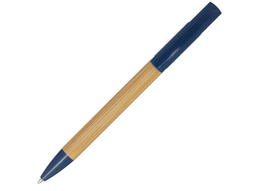 Бамбуковая шариковая ручка, которая также может служить подставкой для телефона. Кнопка и среднее кольцо изготовлены из переработанного пластика, наконечник — из латуни, а корпус — из бамбука, полученного из ответственных источников. Цвет чернил: синий. Длина непрерывной линии: 1000 метров. Размер пера: 1,0 мм. FSC certified bamboo. FSC Mix Credit N5 CU-COC-877277.