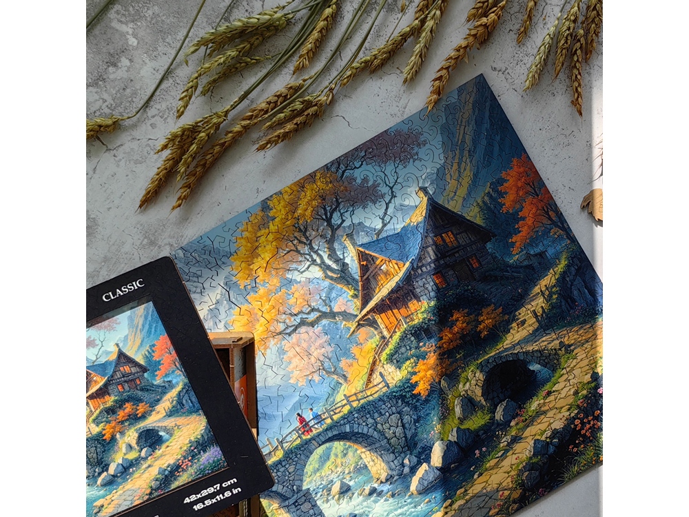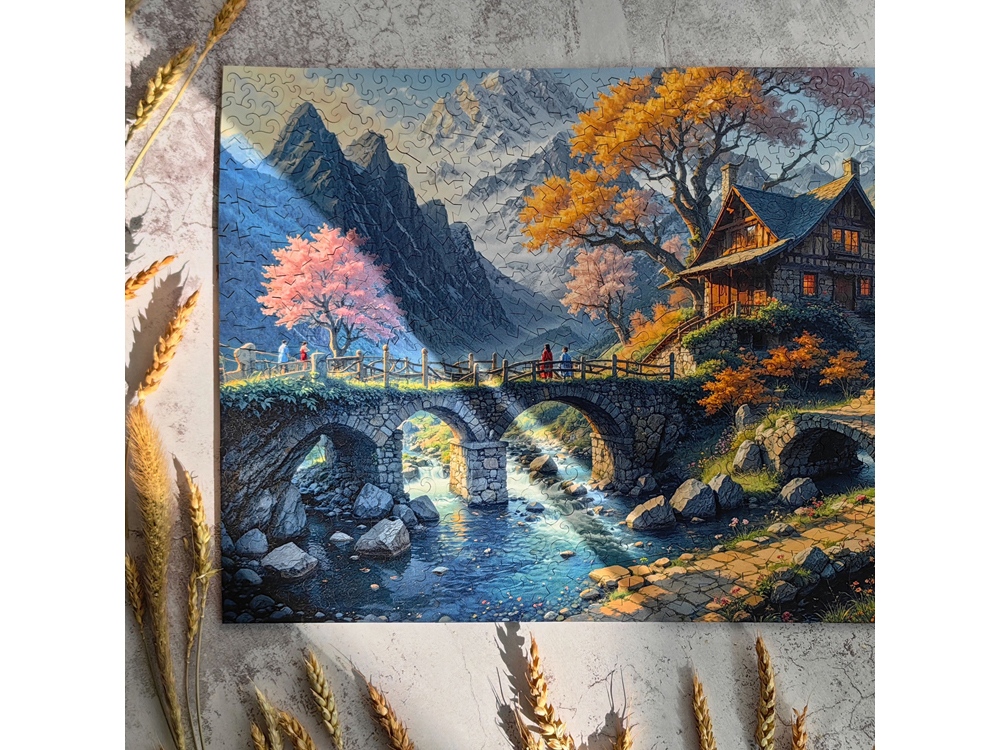Деревянный пазл Wonderhouse перенесет вас в удивительное место. Высоко в горах скрыта от чужих глаз тихая долина. Она прячет загадочный дом со старинным каменным мостом. Оставьте позади тревоги, и — постучитесь в его двери. Здесь проходит зыбкая граница между временами года. Глубокая тишина древних гор окутывает все вокруг, а близкие люди становятся еще ближе. Просто всмотритесь: это настоящая магия, созданная самым могущественным волшебником — природой. Именно она подсказала нам, каким должен быть рез этого пазла. Горные вершины состоят из деталей с острыми краями. Это напоминание о жизненных вызовах и стремительно меняющихся обстоятельствах. А дом и журчащий перед ним ручей сделаны из деталей с плавными очертаниями. Они говорят о семейном тепле, поддержке близких людей, и уюте. Технология Unitouch делает картинку объемной, позволяя вам почувствовать себя частью этого волшебного места. Ощутите края скал на кончиках пальцев, почувствуйте гладкость бегущей воды, погрузитесь в ощущение покоя, которым дышат здешние горы. - Количество деталей: 500шт. - Размер собранного пазла: 42х29,7см - Длительность сборки: от 6 часов - Детали уникальной формы - Прочные и долговечные детали с безупречным сцеплением - Премиальная подарочная коробка из дерева, которую можно персонализировать