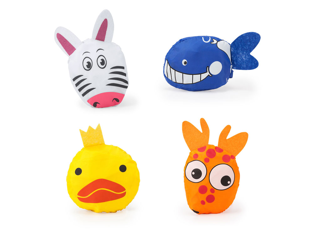 Детский складной рюкзак из мягкого полиэстера 190T. Чехол с изображением животных.
