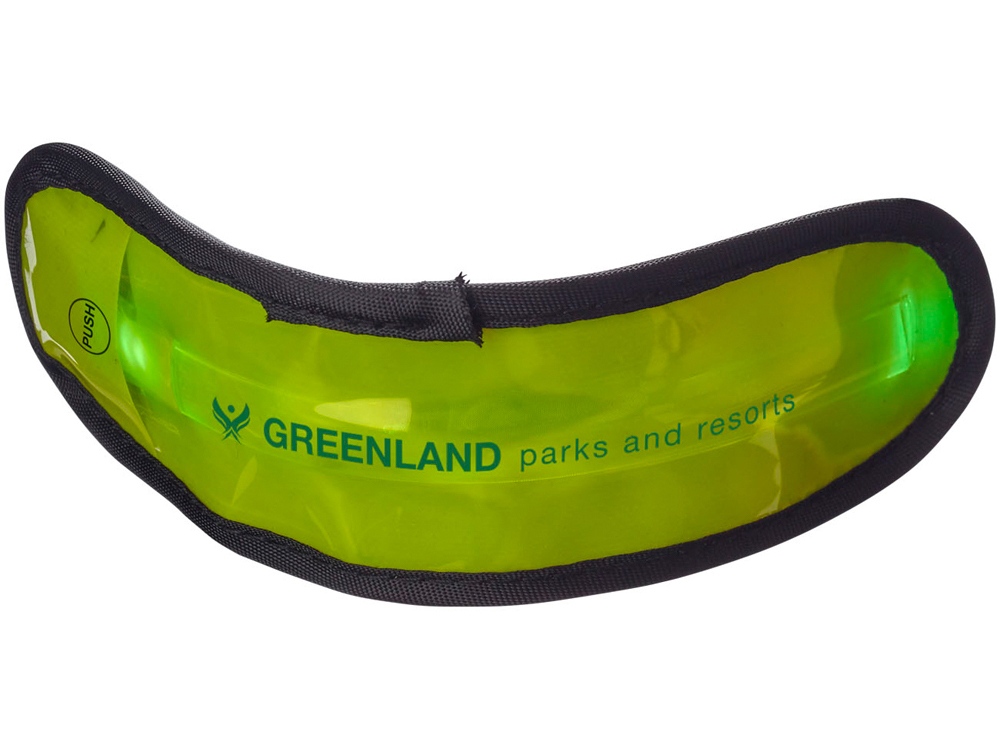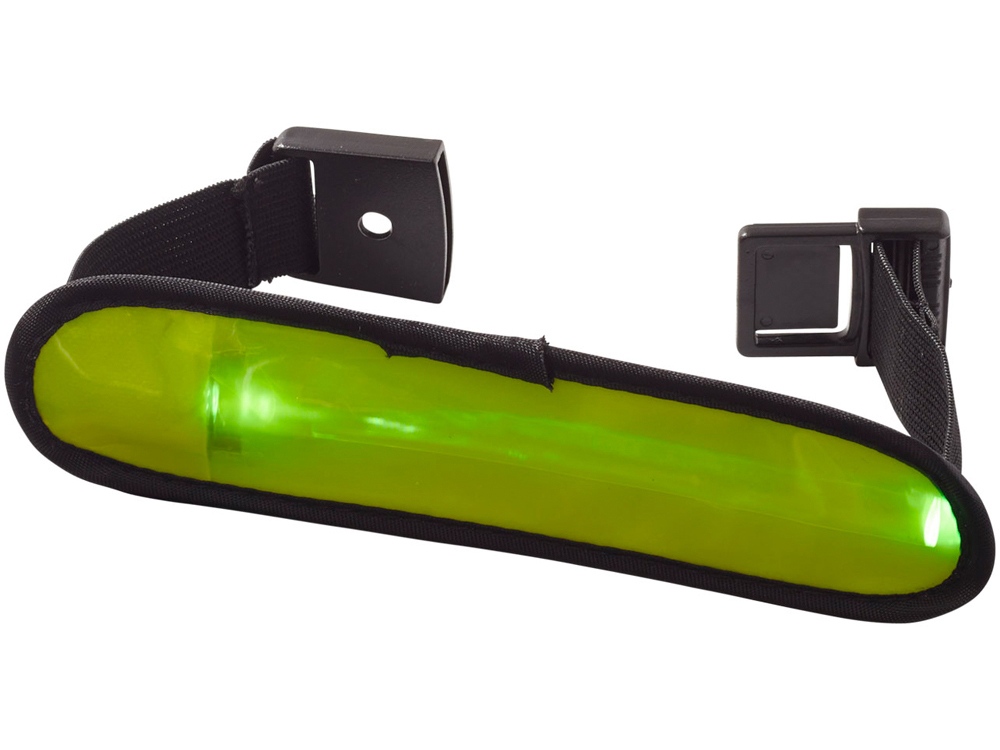 Диодный браслет Olymp. Регулируемый эластичный диодный браслет для видимости на улице с кнопкой для переключения режимов мигания, быстрого мигания, обычного света или выключения. Батарейки в комплекте. ПВХ.