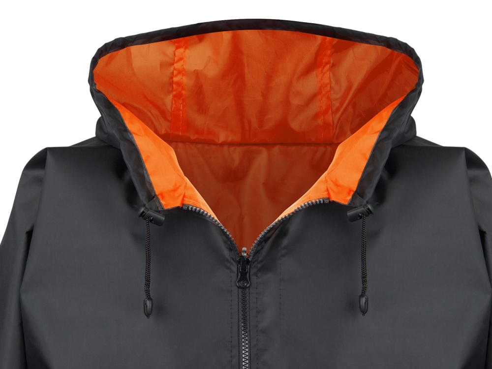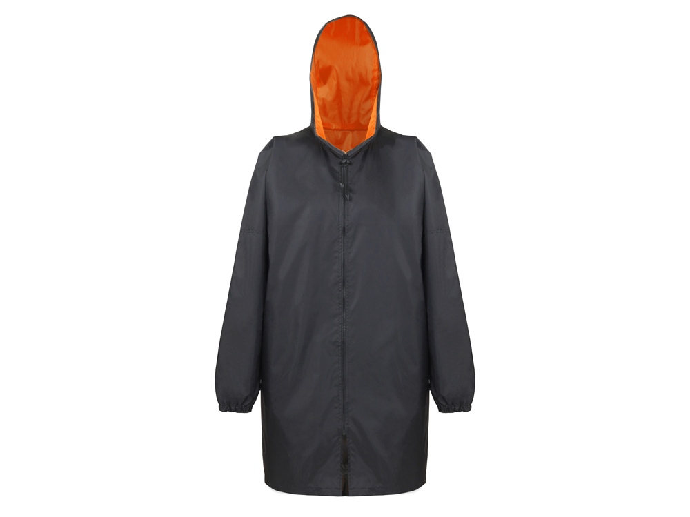 Стильный и практичный дождевик, созданный для активного образа жизни и эффективного промо. Его двусторонний дизайн сочетает простоту и яркость: черная сторона — для повседневной сдержанности, цветная — для привлечения внимания. Изготовлен из легкого, но плотного водоотталкивающего материала, который не теряет форму в непогоду. - Двустороннее ношение — мгновенно меняйте образ, подстраиваясь под настроение или событие. - Полная защита от непогоды: молния, регулируемый капюшон с кулисой, эластичные манжеты на рукавах. - Универсальный дизайн унисекс – подходит как мужчинам так и женщинам