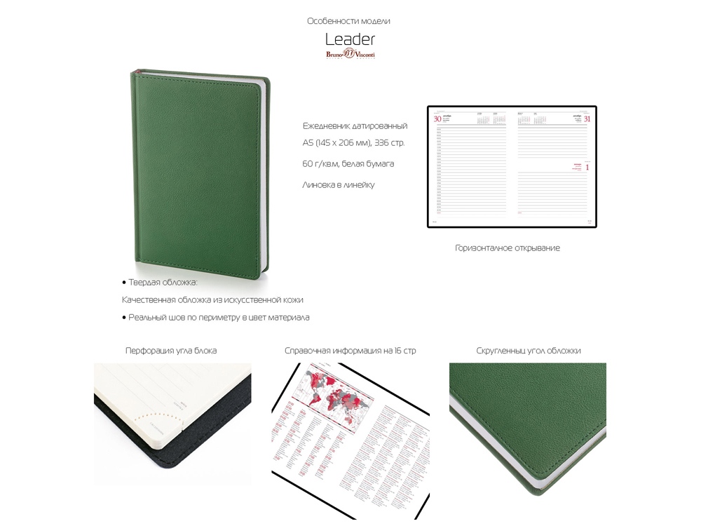 Датированный ежедневник Альт серии LEADER станет вам незаменимым помощником. Обложка ежедневника со скруглёнными уголками выполнена из искусственной кожи со строчкой по периметру в цвет. Переплет блока книжный. Блок произведен из бумаги плотностью 60 г/м2. Страницы белые с двухцветной печатью. Углы блока перфорированные. Есть страница для личных данных, 16 страниц справочной информации . Ляссе блока бордовое 6 мм.