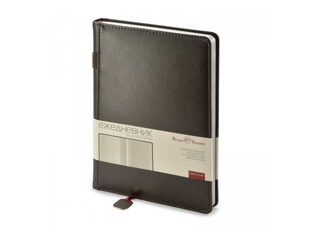 Ежедневник А5 Polo от бренда Bruno Visconti - это качественный и недорогой корпоративный подарок, произведенный специально под персонализацию. Представлен в универсальном формате А5. Обложка выполнена из переплетного материала с фактурой кожи. Современный образ собран из деталей цветовых оттенков: тонированного обреза, двойного ляссе с шильдиком и декоративного корешка, отстроченного от серой части переплета. Закрепленная на корешке фиксирующая резинка из эластичного материала позволяет всегда держать под рукой карандаш и ручку.Все эти части обложки выделены при помощи аккуратной прострочкой. В ежедневнике Polo есть полезная справочная информация, а также 320 страниц для записи идей, мыслей и составления рабочих планов. Для изготовления страниц используется качественный бежевый офсет повышенной плотности (70 г/кв м). Ежедневники от бренда Bruno Visconti можно персонализировать с помощью всех видов тиснения обложки. Наши ежедневники помогут быть успешным и эффективным в карьере и повседневной жизни!